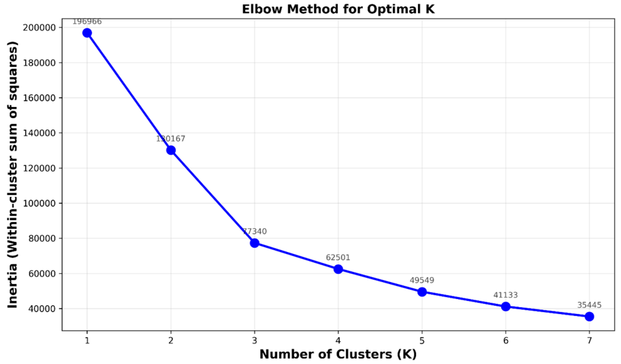 K-Means Clustering analysis. The Elbow Method demonstrates within-cluster sum of squares against number of clusters to identify the optimal k value at 4 where the curve reaches its inflection point.