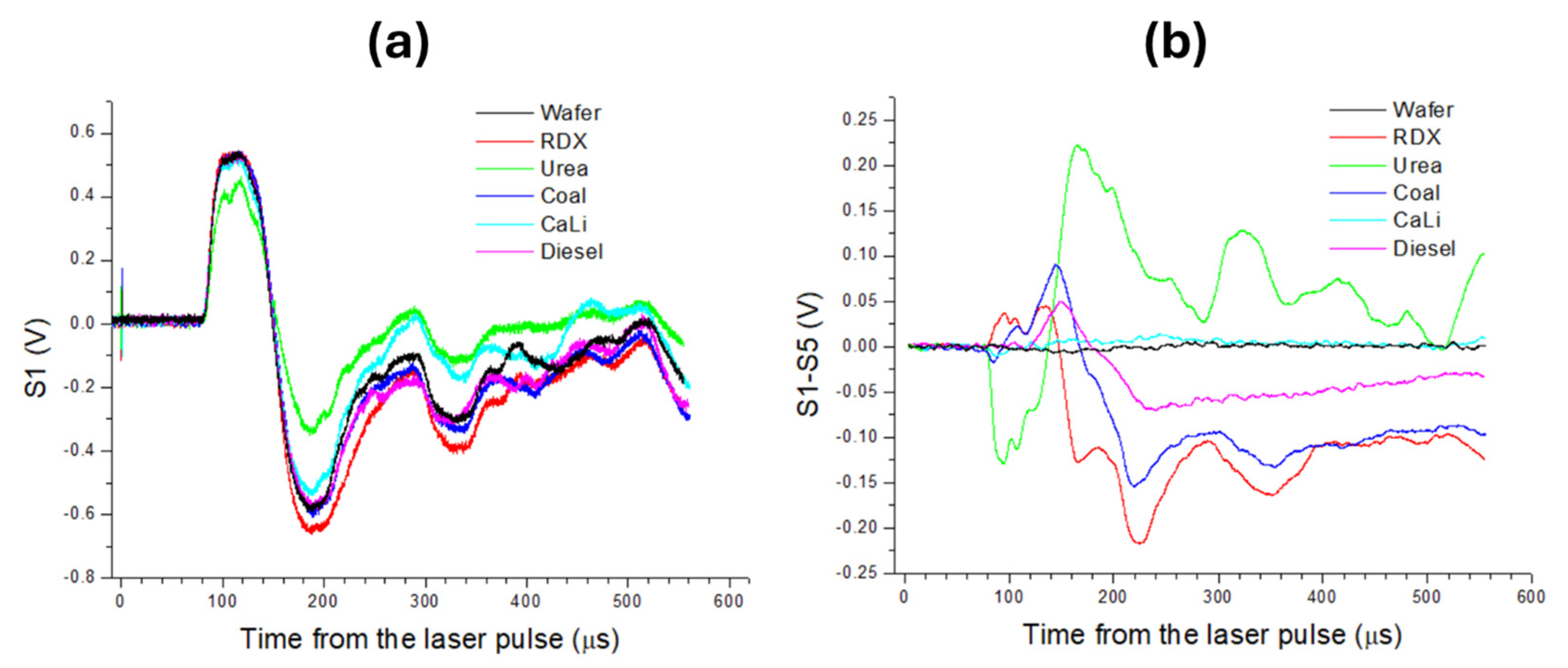- Wynn, C.M.; Haupt, R.W.; Doherty, J.H.; Kunz, R.R.; Bai, W.; Diebold, G. Use of photoacoustic excitation and laser vibrometry for remote explosives detection. Appl. Opt. 2016, 55, 9054–9059. [Google Scholar] [CrossRef]