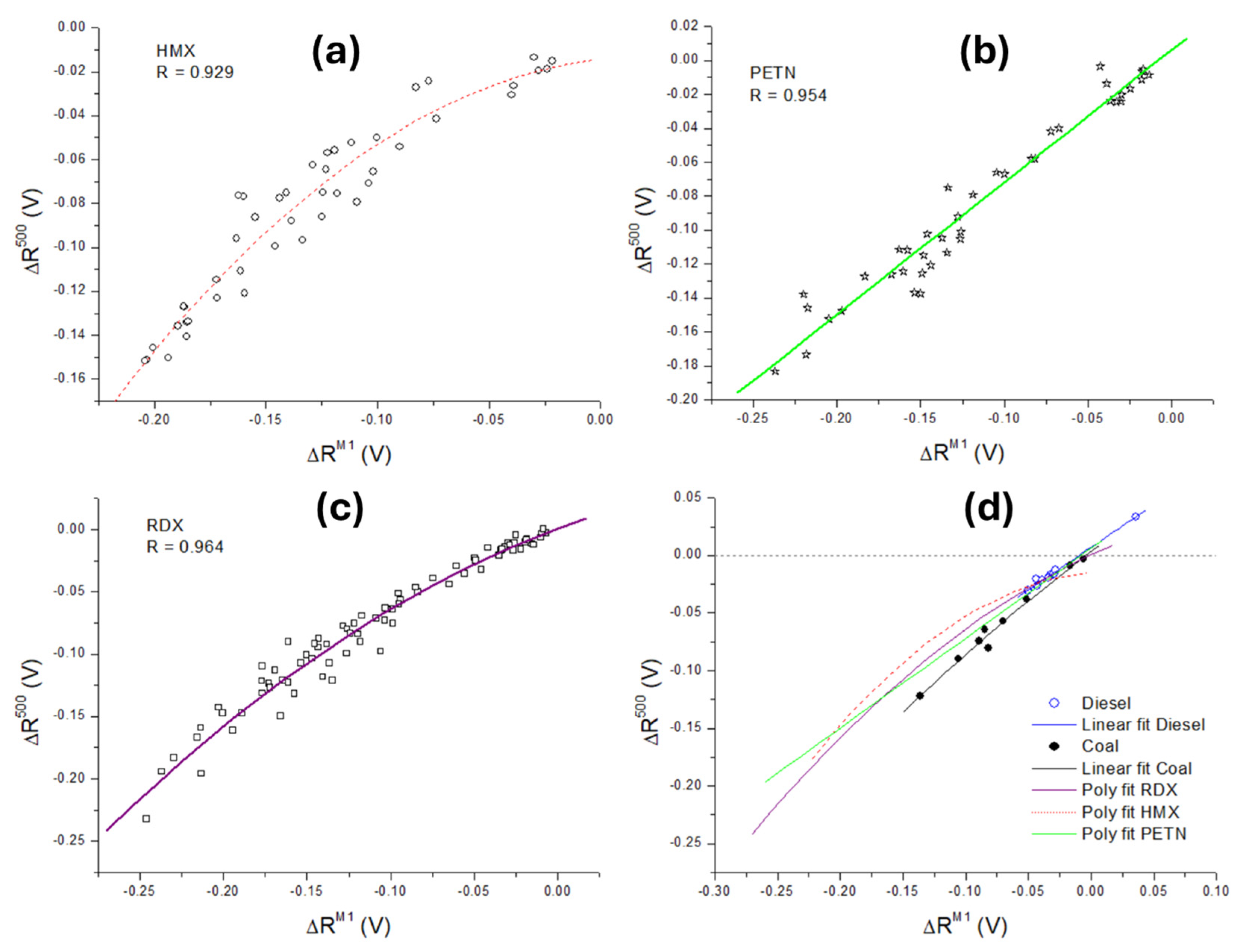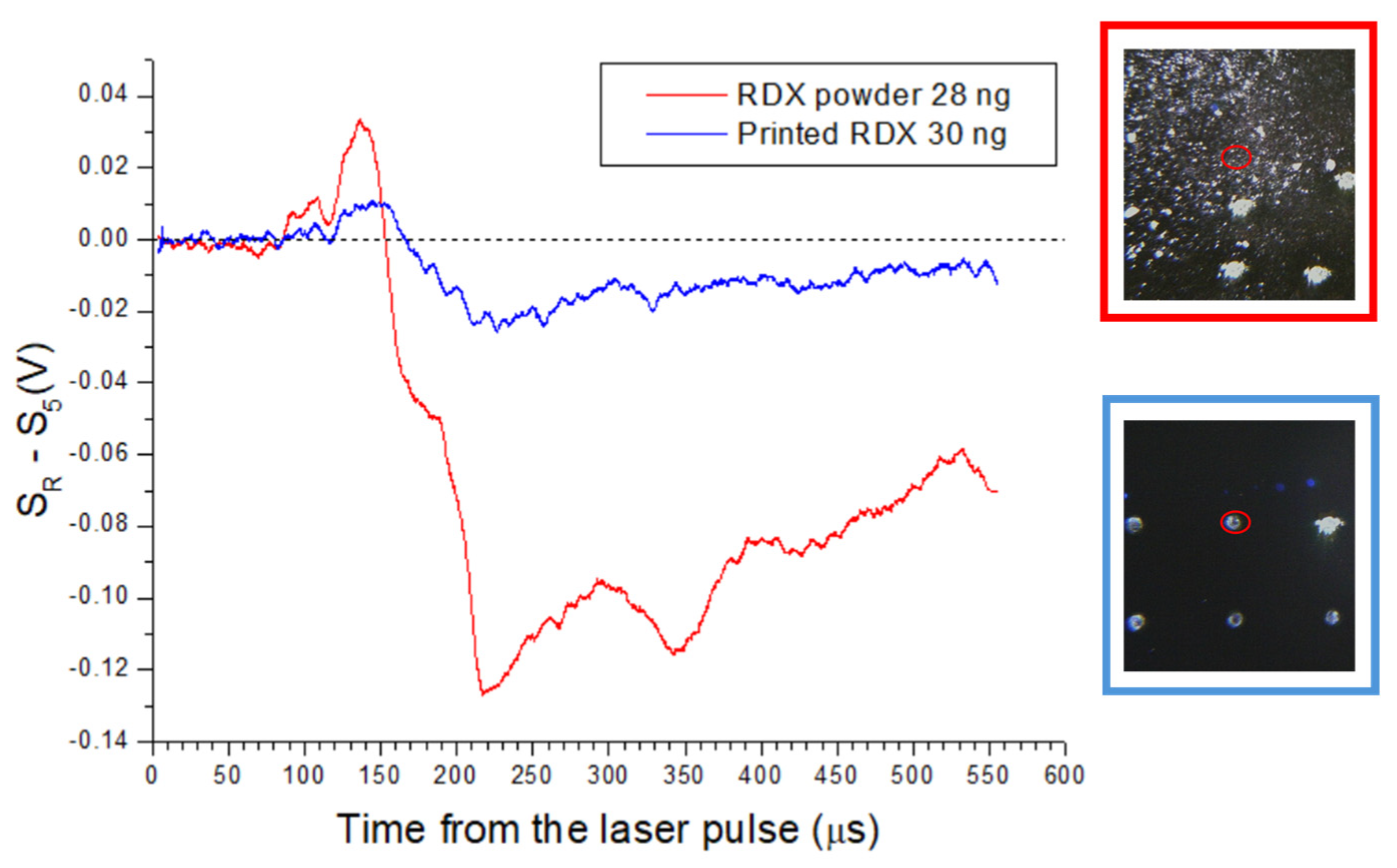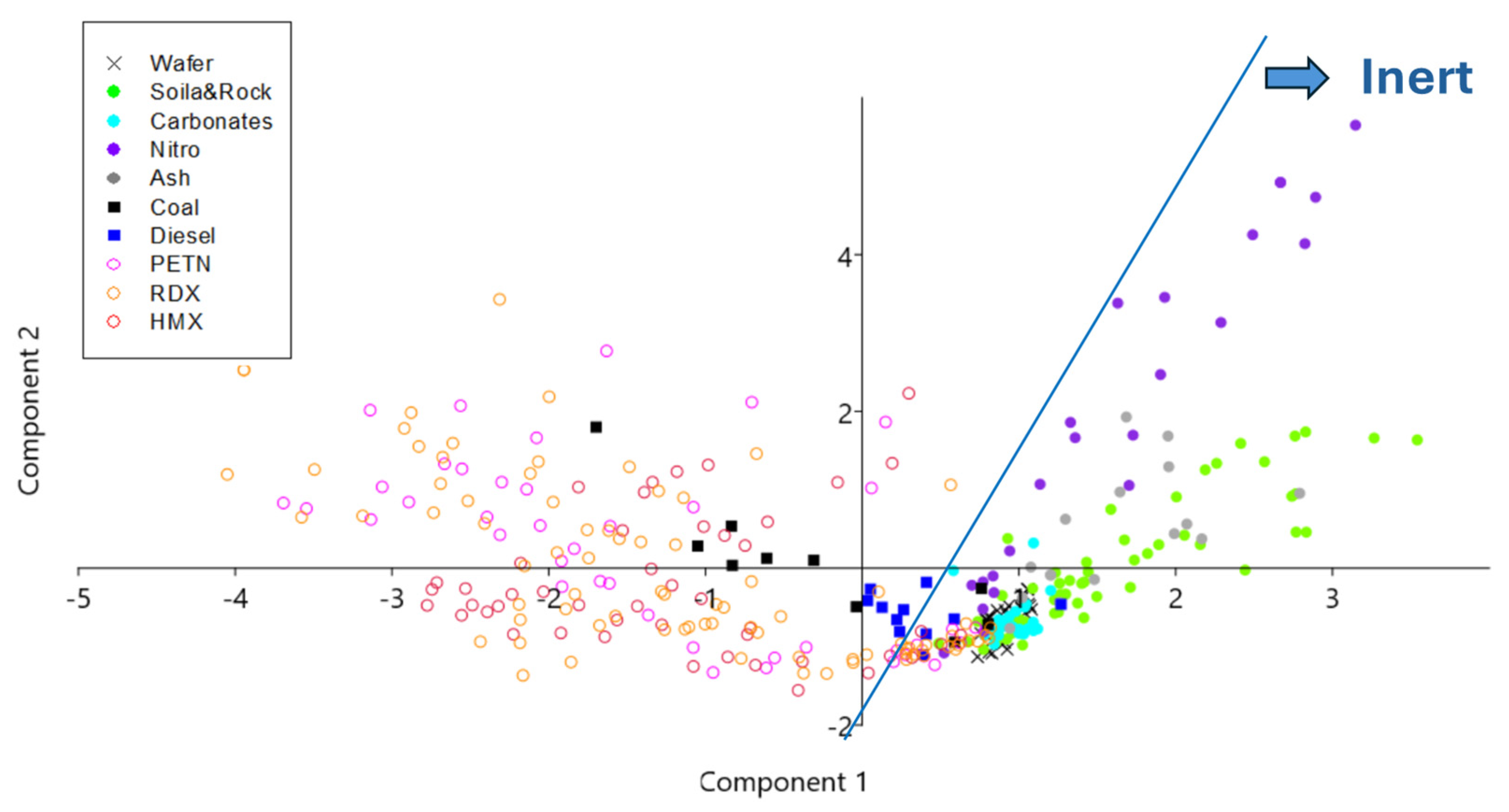 3.2. Discrimination of Explosives in Traces