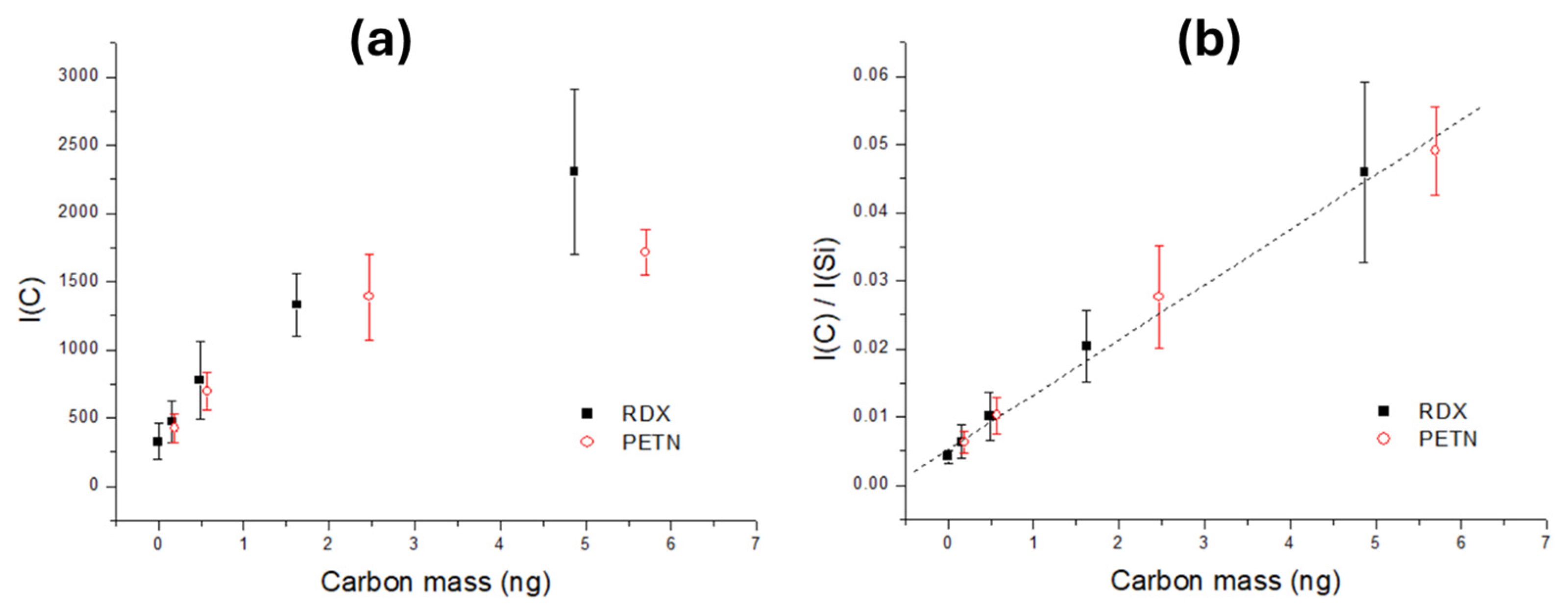 - Abdelhamid, M.; Fortes, F.J.; Harith, M.A.; Laserna, J.J. Analysis of explosive residues in human fingerprints using optical catapulting–laser-induced breakdown spectroscopy. J. Anal. At. Spectrom. 2011, 26, 1445–1450. [Google Scholar] [CrossRef]