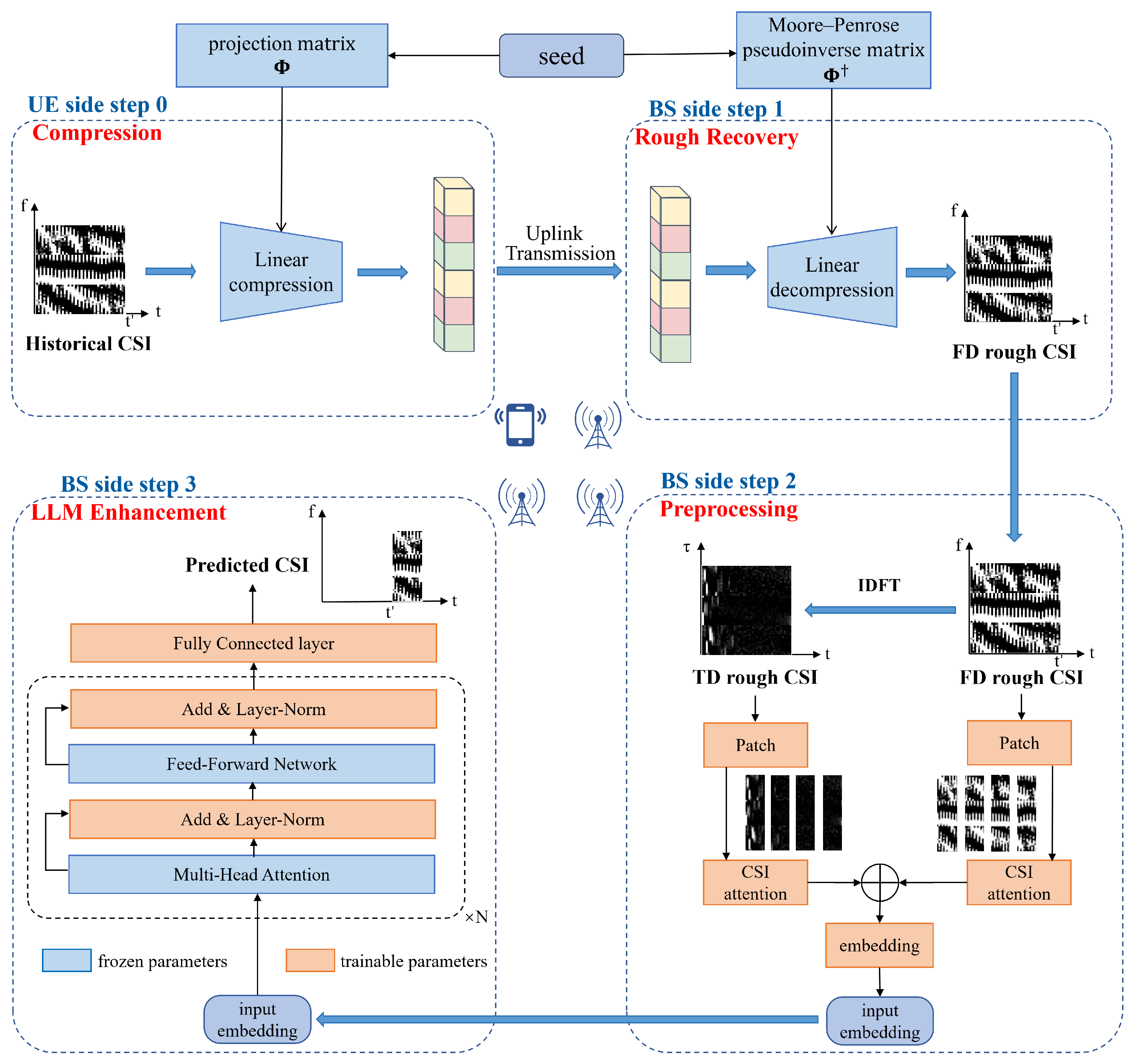 3.2. BS-Side CSI Recovery and LLM Enhancement