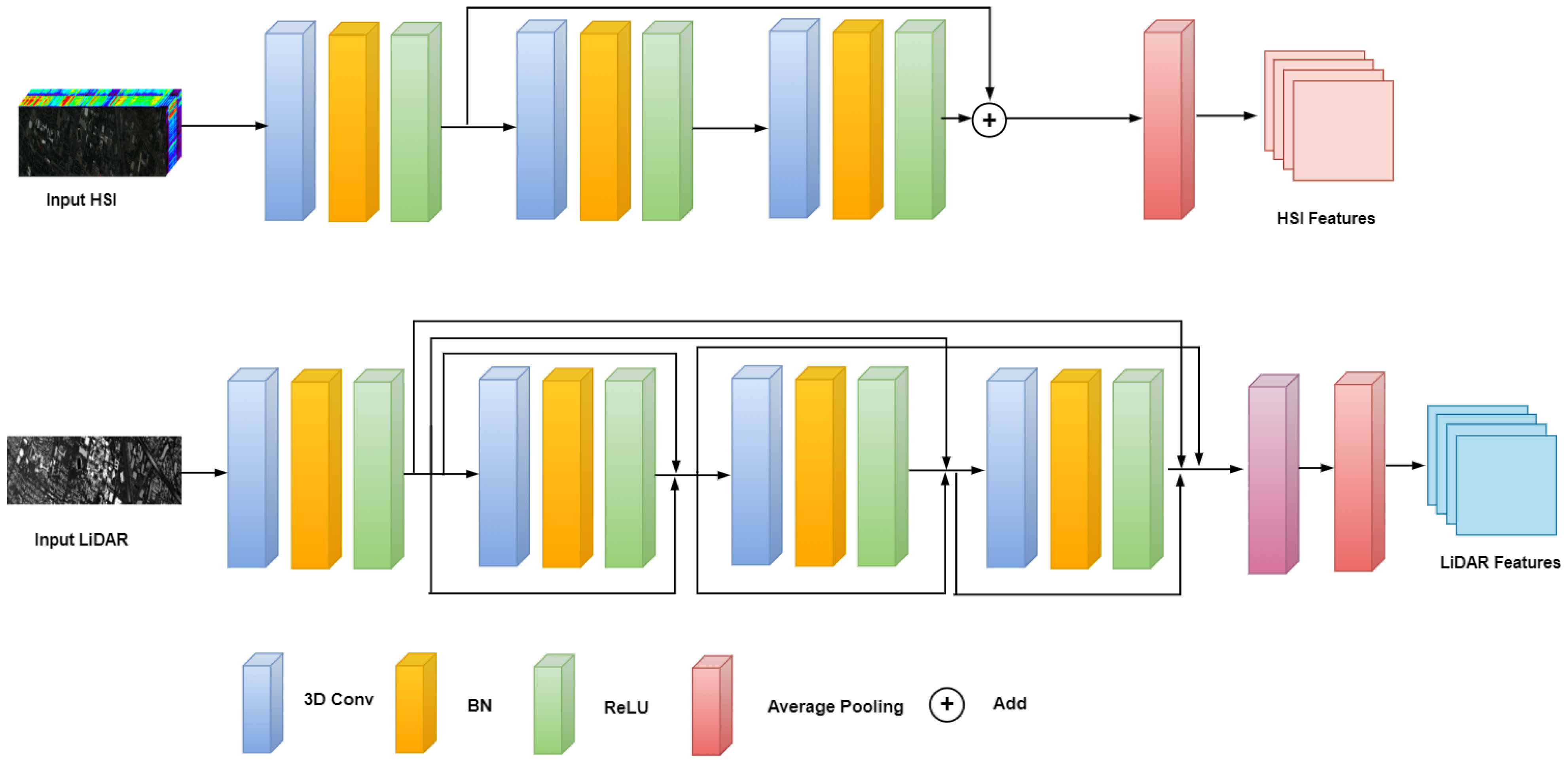 Despite this progress, multimodal HSI–LiDAR fusion remains difficult under limited supervision. HSI suffers from large intra-class spectral variance and sensitivity to noise, while LiDAR exhibits irregular sampling patterns and modality-specific distortions. Effective fusion requires bridging disparate feature spaces while preserving modality-specific advantages. Deep HSI classifiers based on random-patch learning, dense residual transfer, and spectral–spatial CNNs offer improved robustness [