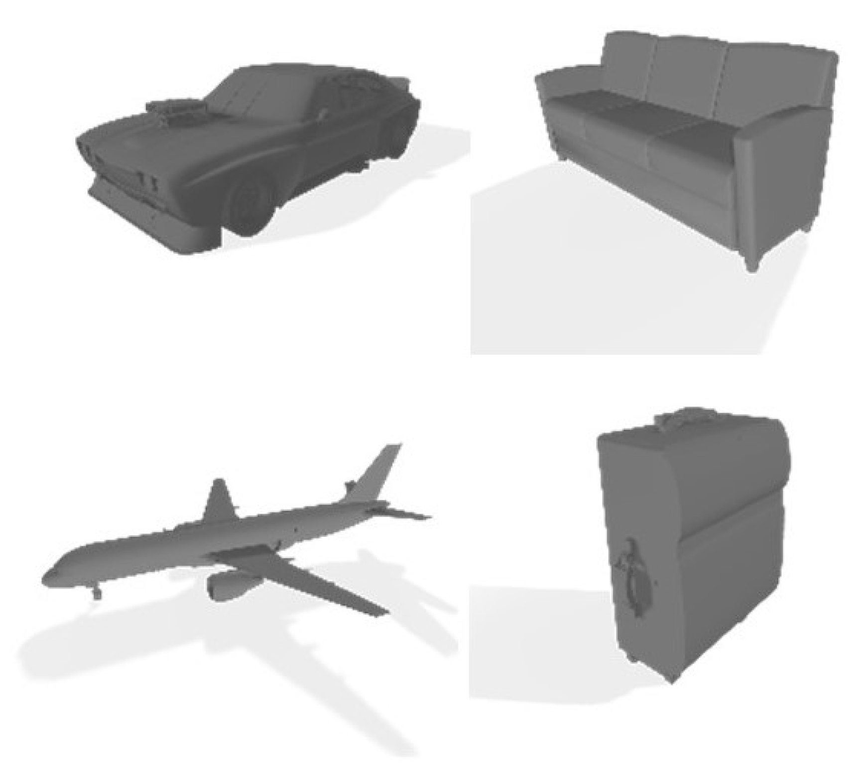 Figure 4, it is a collection of single-object CAD models containing 57,448 objects across 55 categories, developed by researchers from Stanford University, Princeton University, and the Toyota Technological Institute at Chicago. This dataset is widely adopted for 3D vision tasks and provides rich geometric information for computer graphics and vision research.