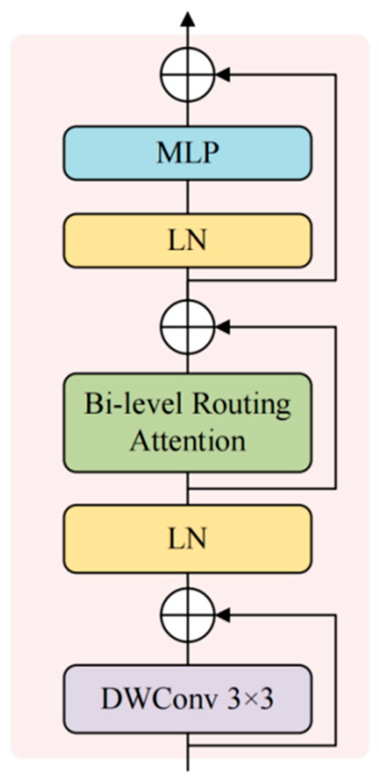- Zhu, L.; Wang, X.; Ke, Z.; Zhang, W.; Lau, R.W. Biformer: Vision transformer with bi-level routing attention. In Proceedings of the IEEE/CVF Conference on Computer Vision and Pattern Recognition, Vancouver, BC, Canada, 18–22 June 2023; pp. 10323–10333. [Google Scholar]