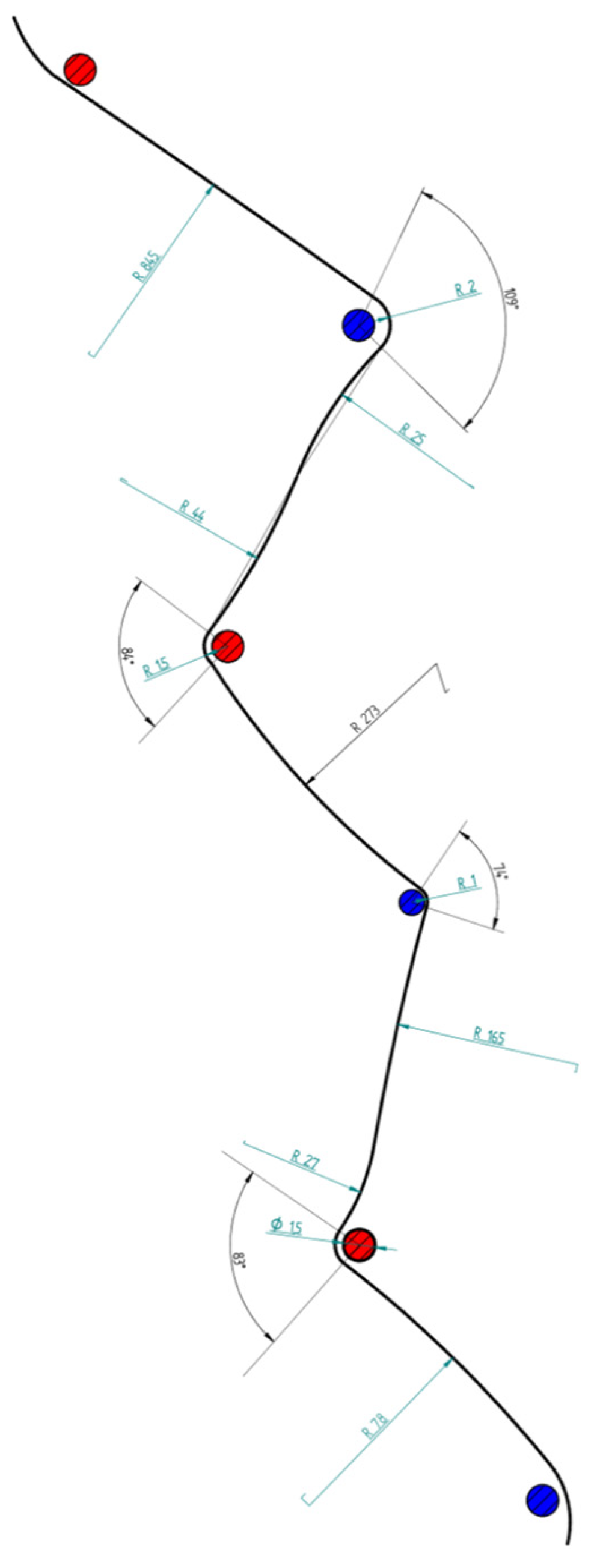 The arc-based trajectory estimation model was adopted based on established biomechanical and physical representations of carved ski turns, in which the skier’s center of mass follows a quasi-circular path around each gate. The primary assumptions of this model include a constant turn radius per gate and smooth, continuous directional changes, which are consistent with controlled giant slalom skiing. Together, these modeling choices allow the estimation of additional path length and associated time loss in a computationally efficient and biomechanically interpretable manner.