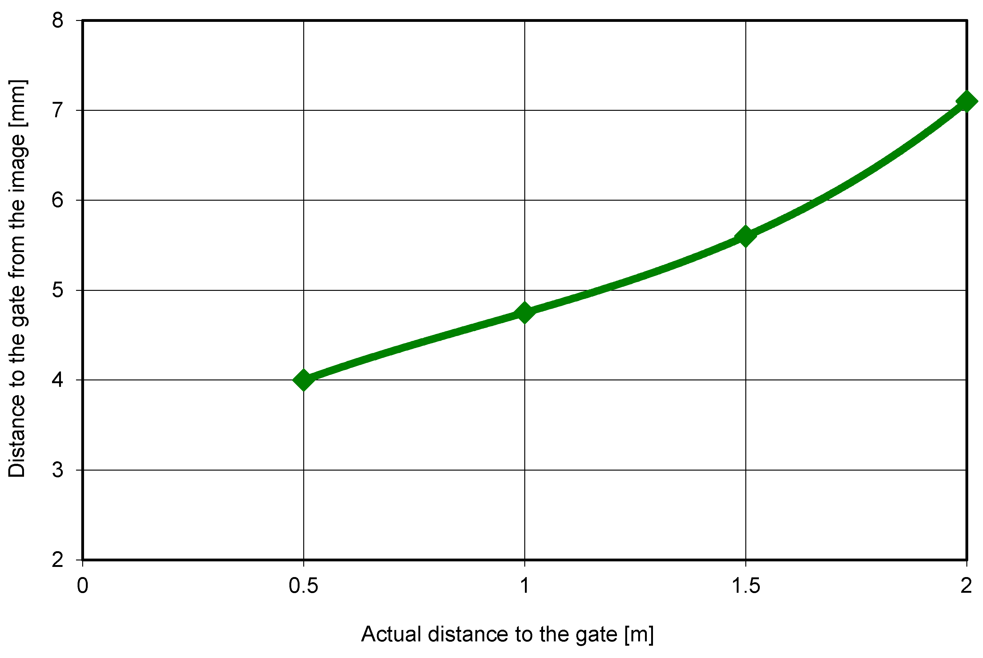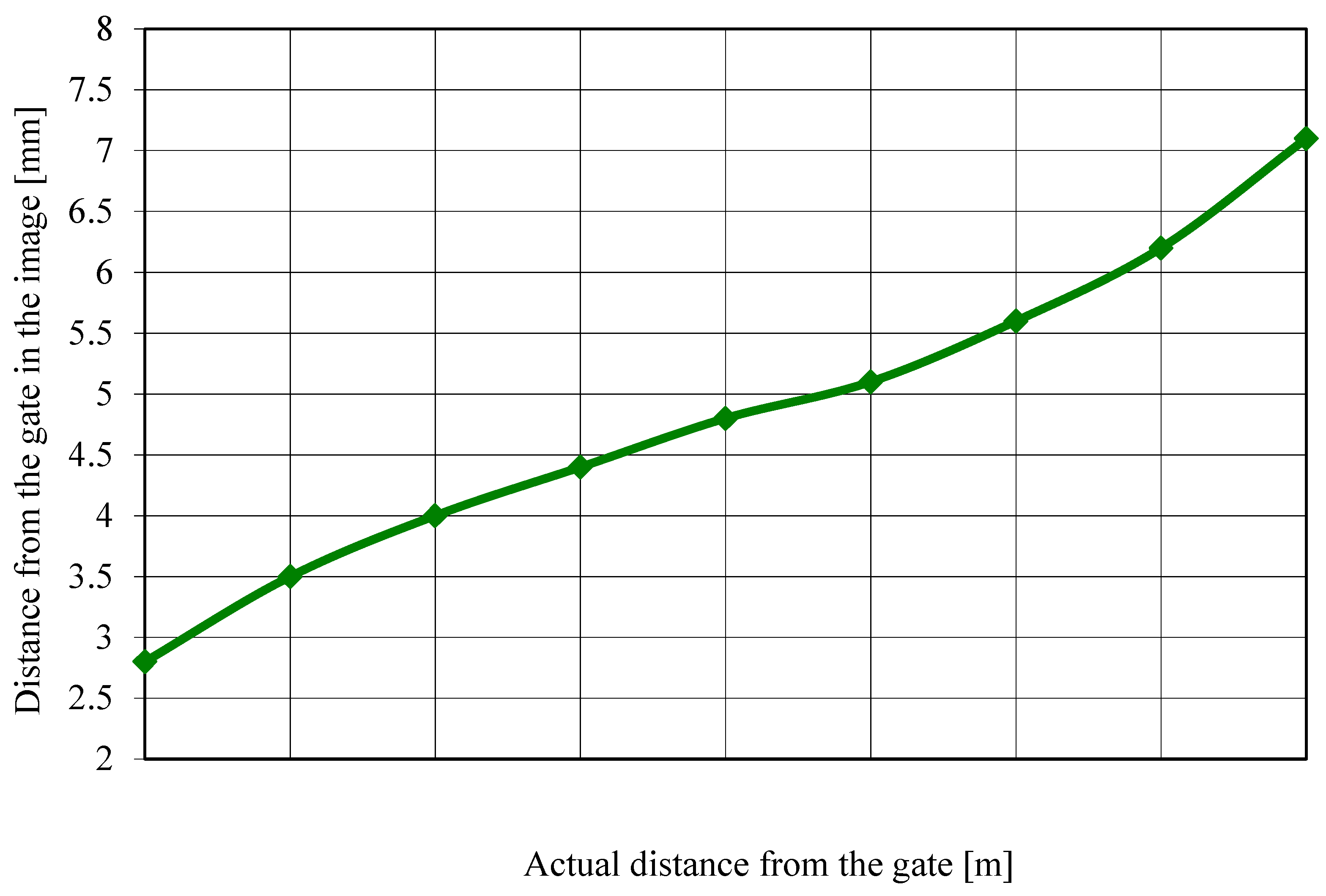 The data collected during calibration were processed, and knowing the distance at which the athlete passed each gate for every recording, the graph shown in