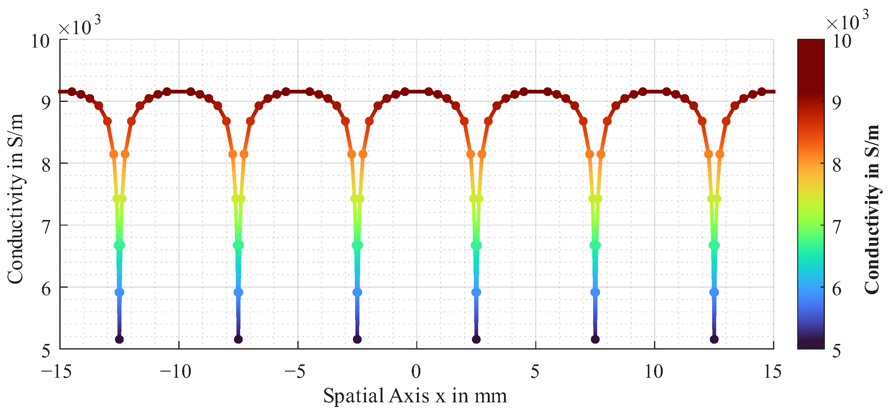 - Heuer, H.; Schulze, M.; Klein, M. 5.2.3 Abbildende Wirbelstromsensoren zur hochauflösenden berührungslosen Abbildung von elektrischen Eigenschaften schlecht leitender Objekte. In Proceedings of the Tagungsband; AMA Service GmbH: Wunstorf, Germany, 2012; pp. 548–554. [Google Scholar] [CrossRef]