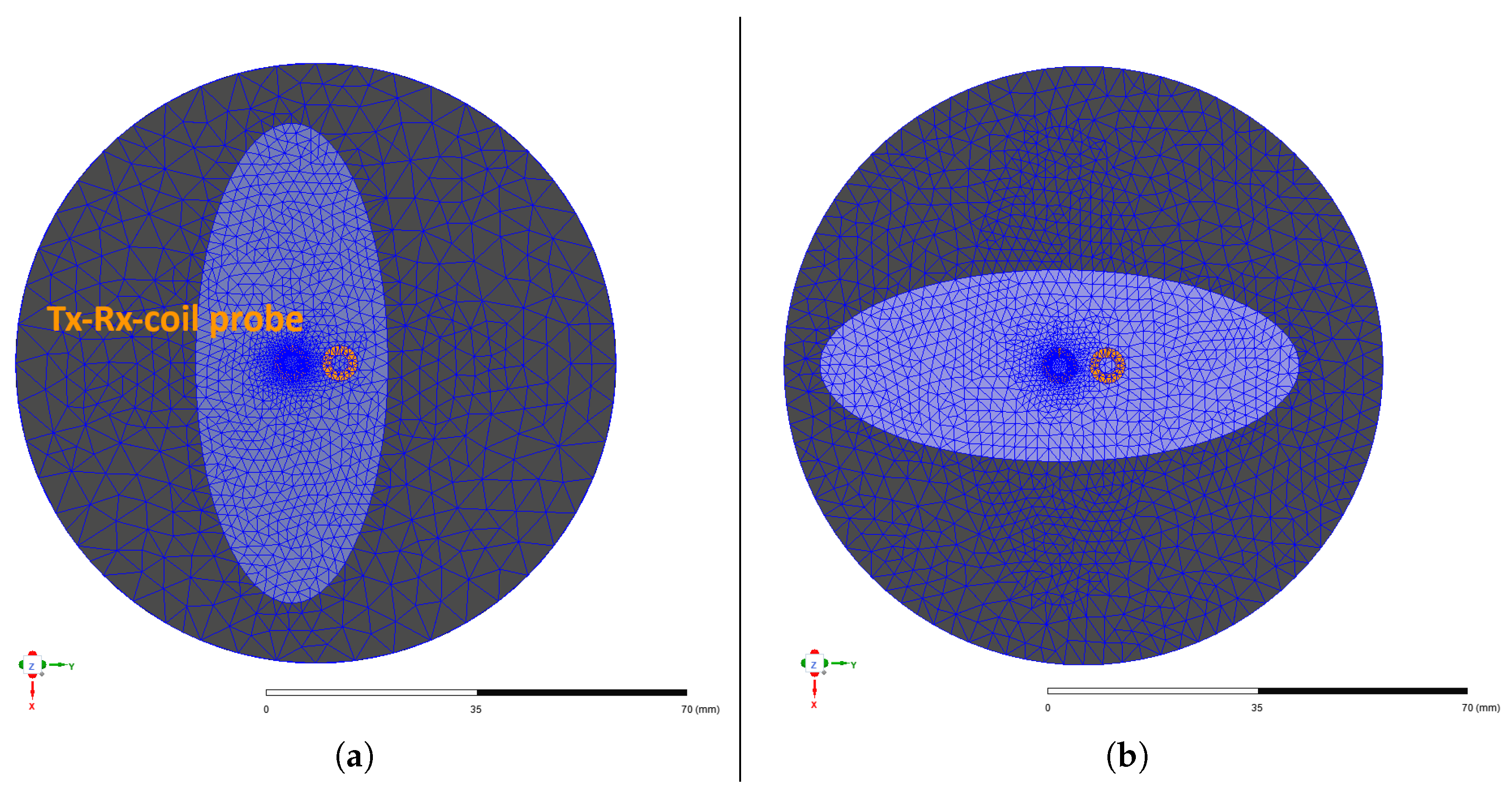 - Cheng, J.; Wang, B.; Xu, D.; Qiu, J.; Takagi, T. Resistive loss considerations in the finite element analysis of eddy current attenuation in anisotropic conductive composites. NDT E Int. 2021, 119, 102403. [Google Scholar] [CrossRef]