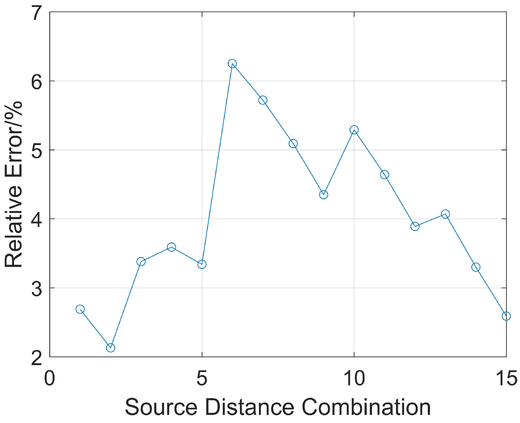 3.3. Ranging Effect of Different Source Distance Combinations