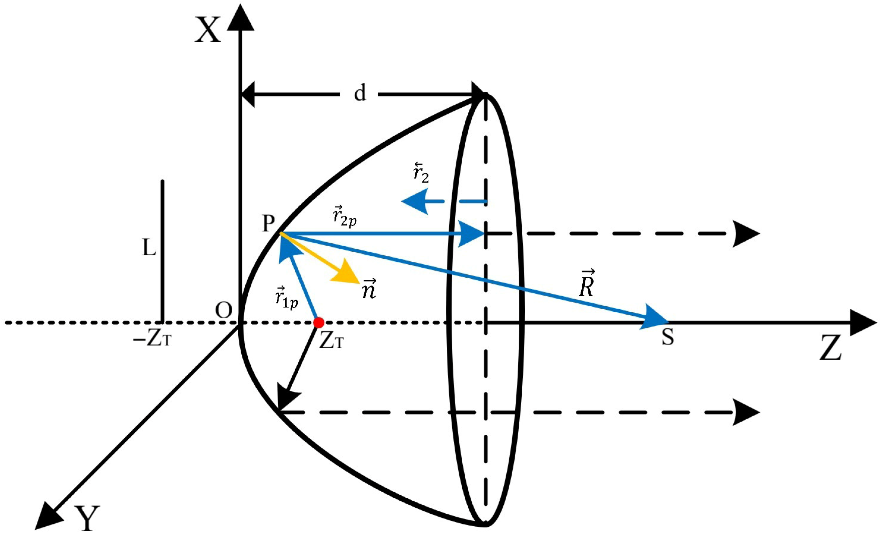 2.1. Principle and Model of Rotating Paraboloidal Reflector