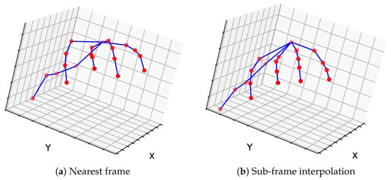 In the fourth and fifth experiments, we demonstrated the importance of sub-frame-accurate synchronization for multi-view computer vision tasks. Specifically, we synchronized a multi-view recording with our method and compared the results of 3D pose estimation and 3D reconstruction when using sub-frame interpolation versus nearest-frame matching.