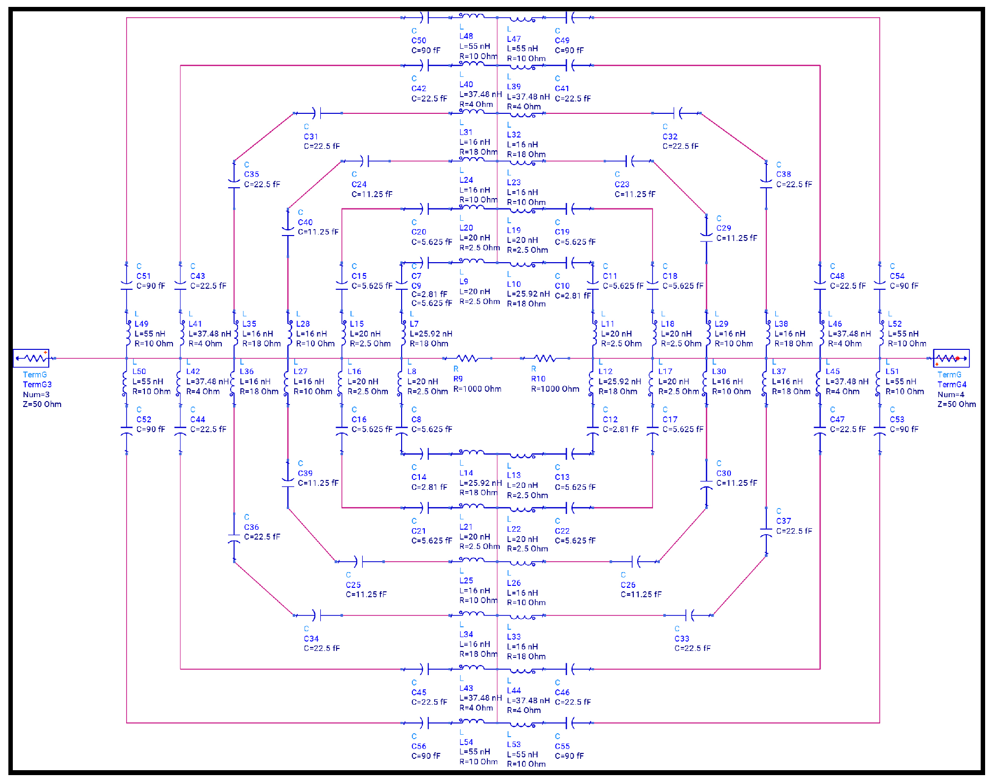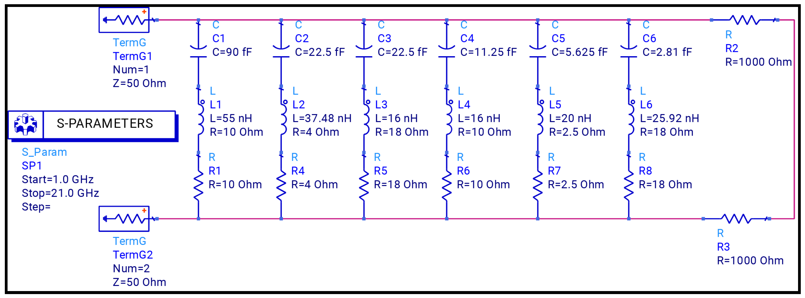 Figure 7. All equivalent circuits are designed and simulated using ADS.