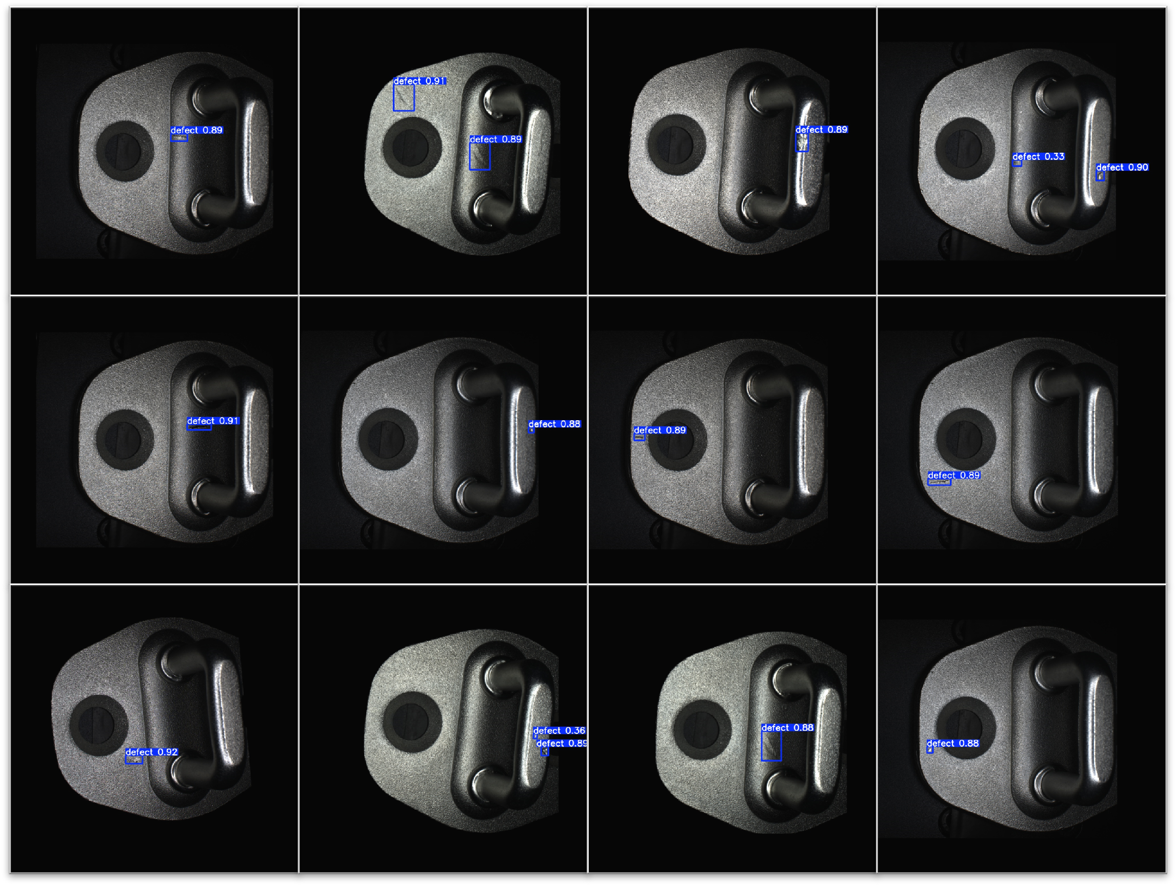 Although a smaller aperture reduces light throughput, controlled dome illumination and exposure compensation prevent excessive noise amplification. Consequently, the SNR remains sufficient for weak defect detection, as reflected by the stable mAP@50 and low false-positive rates achieved with the configuration.