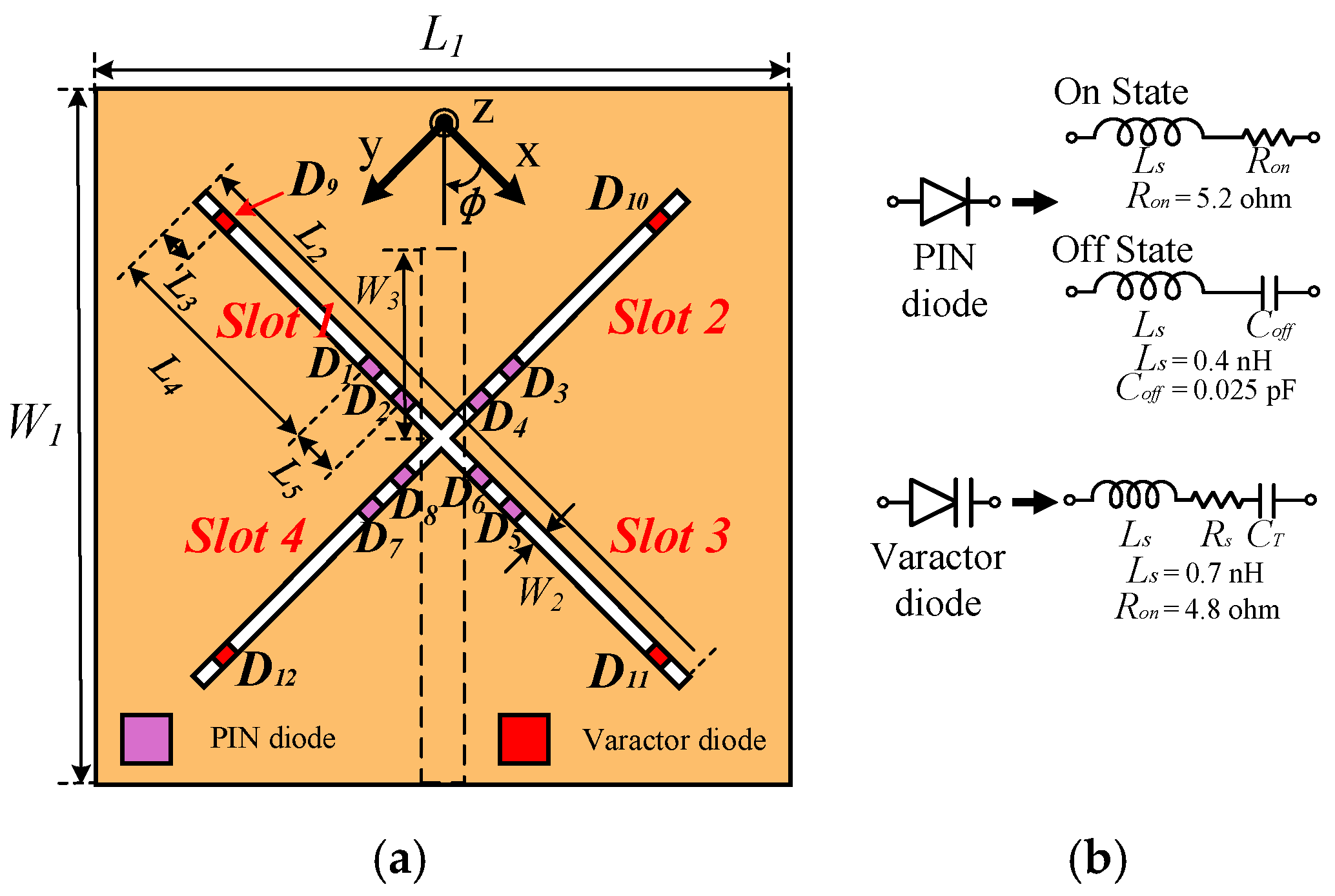 Figure 9b shows the case where two PIN diodes are used per slot.