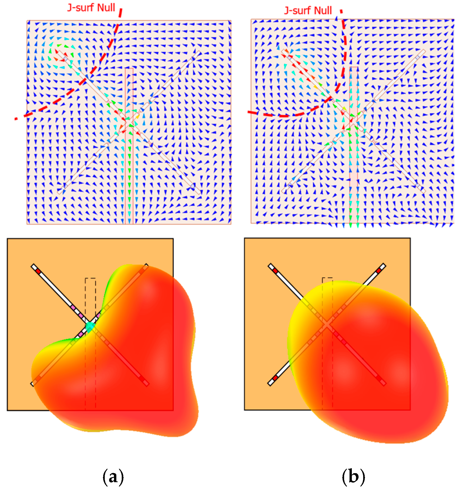 Figure 9a illustrates the E-field distribution when one PIN diode is placed per slot, while