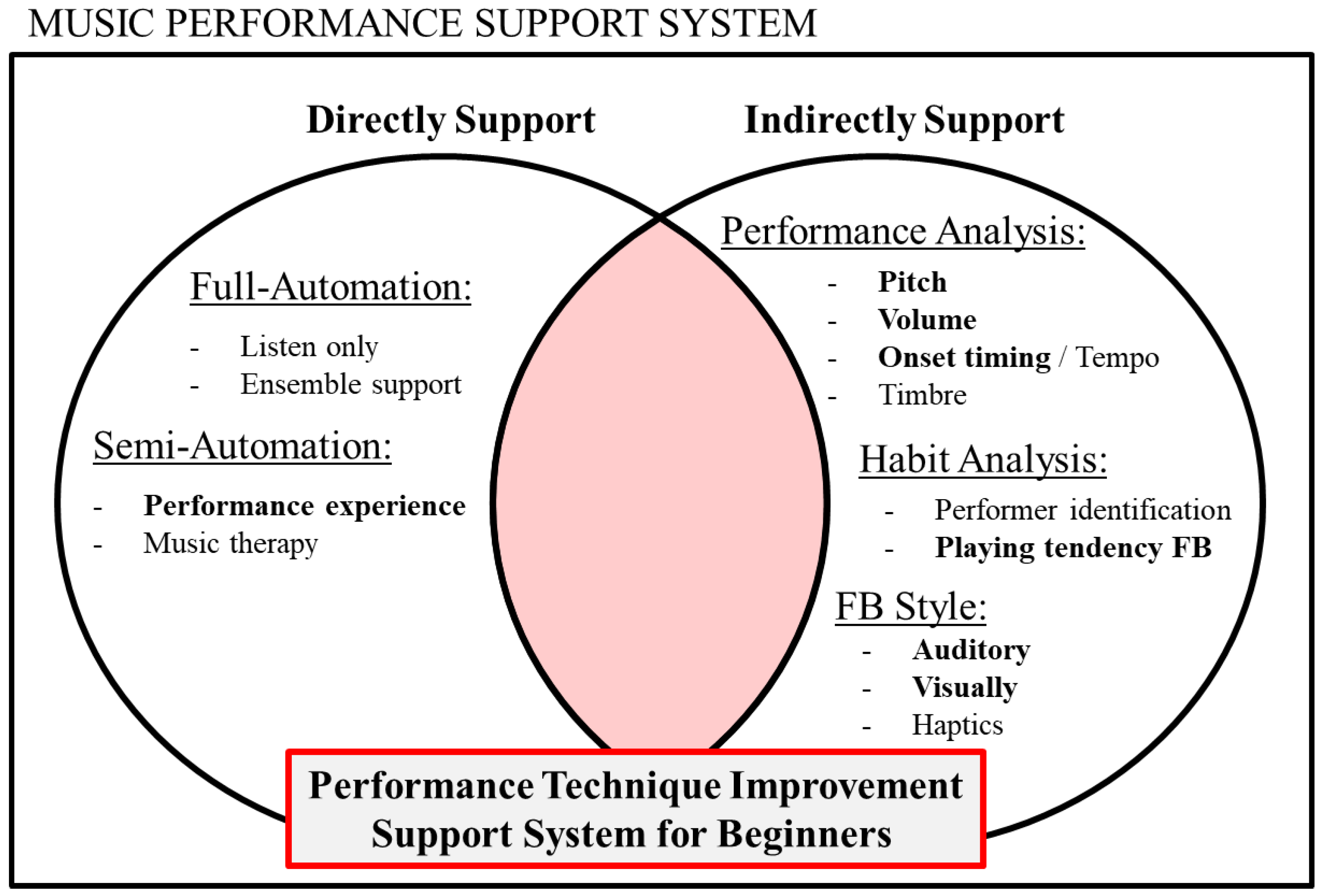 Although relatively few studies address both direct and indirect assistance, some examples exist. Chin et al. proposed a computer-assisted, multimodal performance-support system for recorder players [