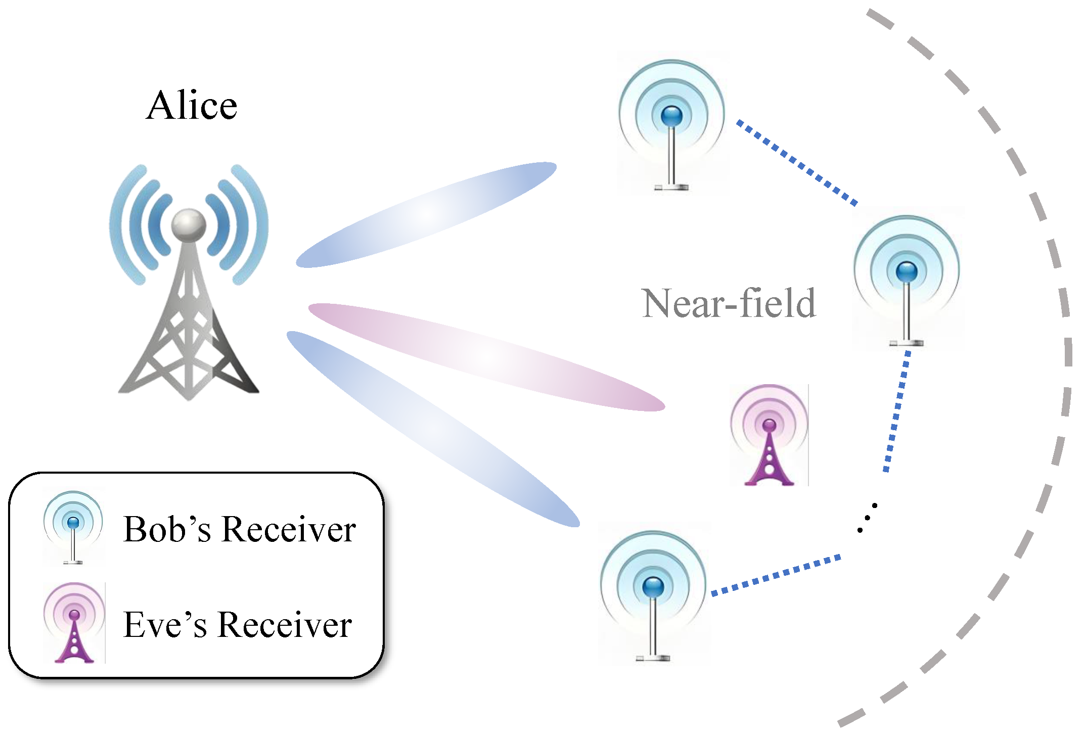 7]. Consequently, ensuring information confidentiality can no longer rely solely on traditional security mechanisms. Instead, there is a compelling need to develop robust and intrinsically secure transmission strategies that explicitly account for the unique challenges posed by near-field propagation in MIMO-enabled 6G systems [