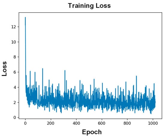 In the DataLoader, the batch size was 8, and the shuffle was set to True. In addition, the optimizer was used to guide the parameters of the target loss function to update the appropriate size in the correct direction, so that the updated parameters make the objective function continue to approach the global minimum point. The adaptive moment estimation optimizer was selected in this study. Set the learning rate of each parameter group using a cosine annealing schedule to prevent the model from overfitting. The proposed CNN network was implemented in an NAVIDIA GPU (GTX1650, Santa Clara, CA, USA) with the open-source Python library Pytorch 2.0 and the training time was 4 h. The learning rate is set to 10−4.