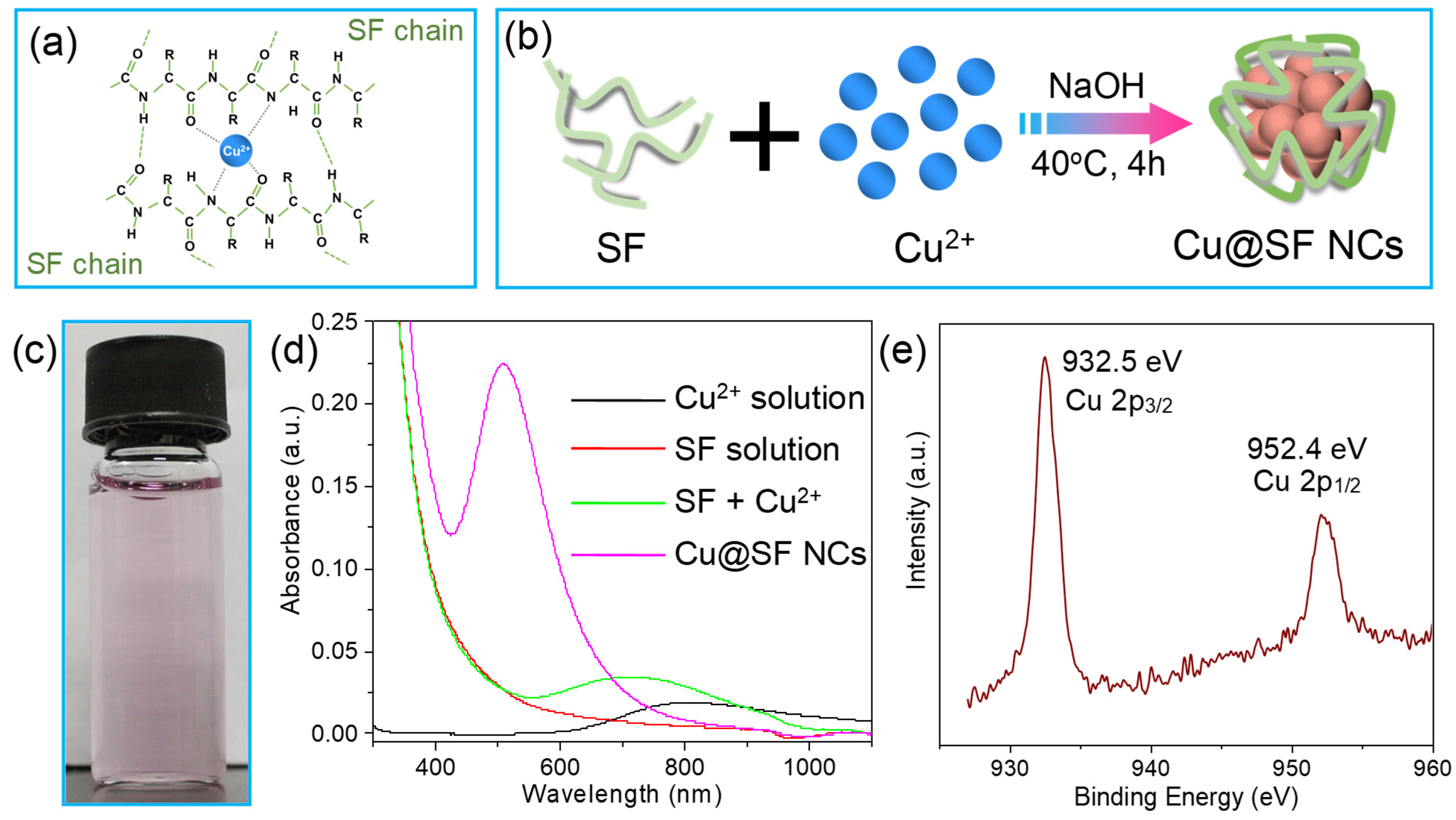 2.3. SF-Induced Synthesis of Copper Nanoclusters (Cu@SF NCs)
