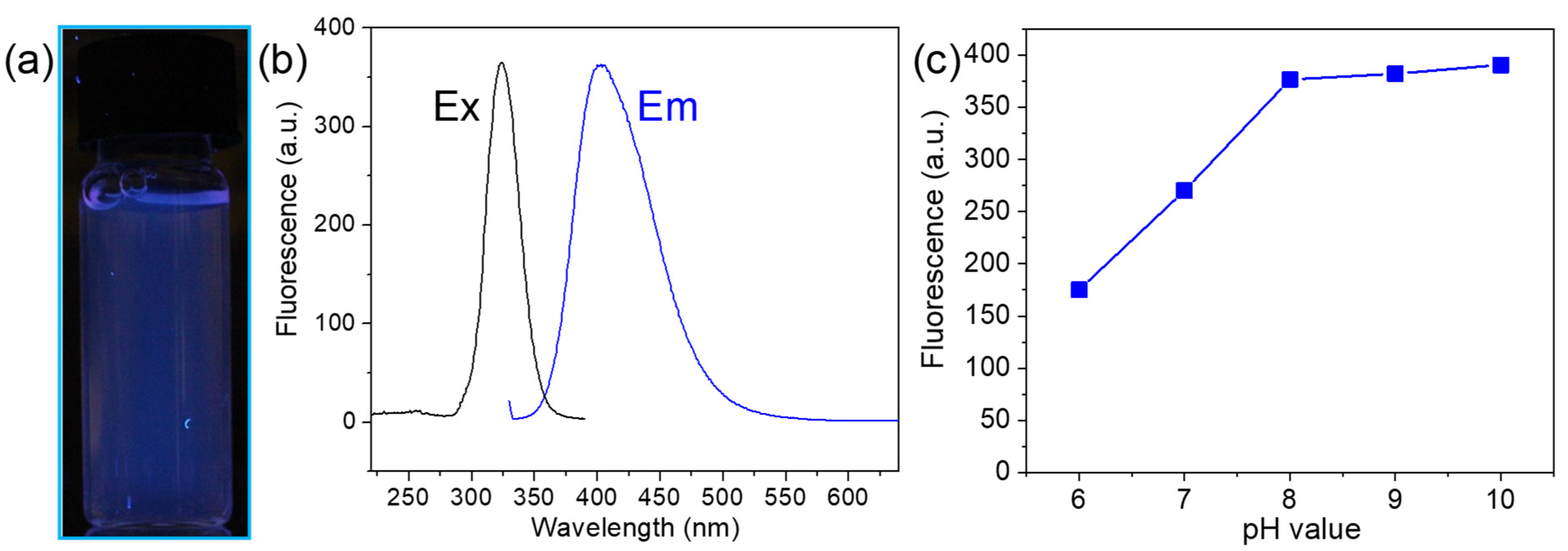 - Zhang, G.; Xu, T.; Du, H.; Qiao, Y.; Guo, X.; Shi, L.; Zhang, Y.; Shuang, S.; Dong, C.; Ma, H. A reversible fluorescent pH-sensing system based on the one-pot synthesis of natural silk fibroin-capped copper nanoclusters. J. Mater. Chem. C 2016, 4, 3540–3545. [Google Scholar] [CrossRef]