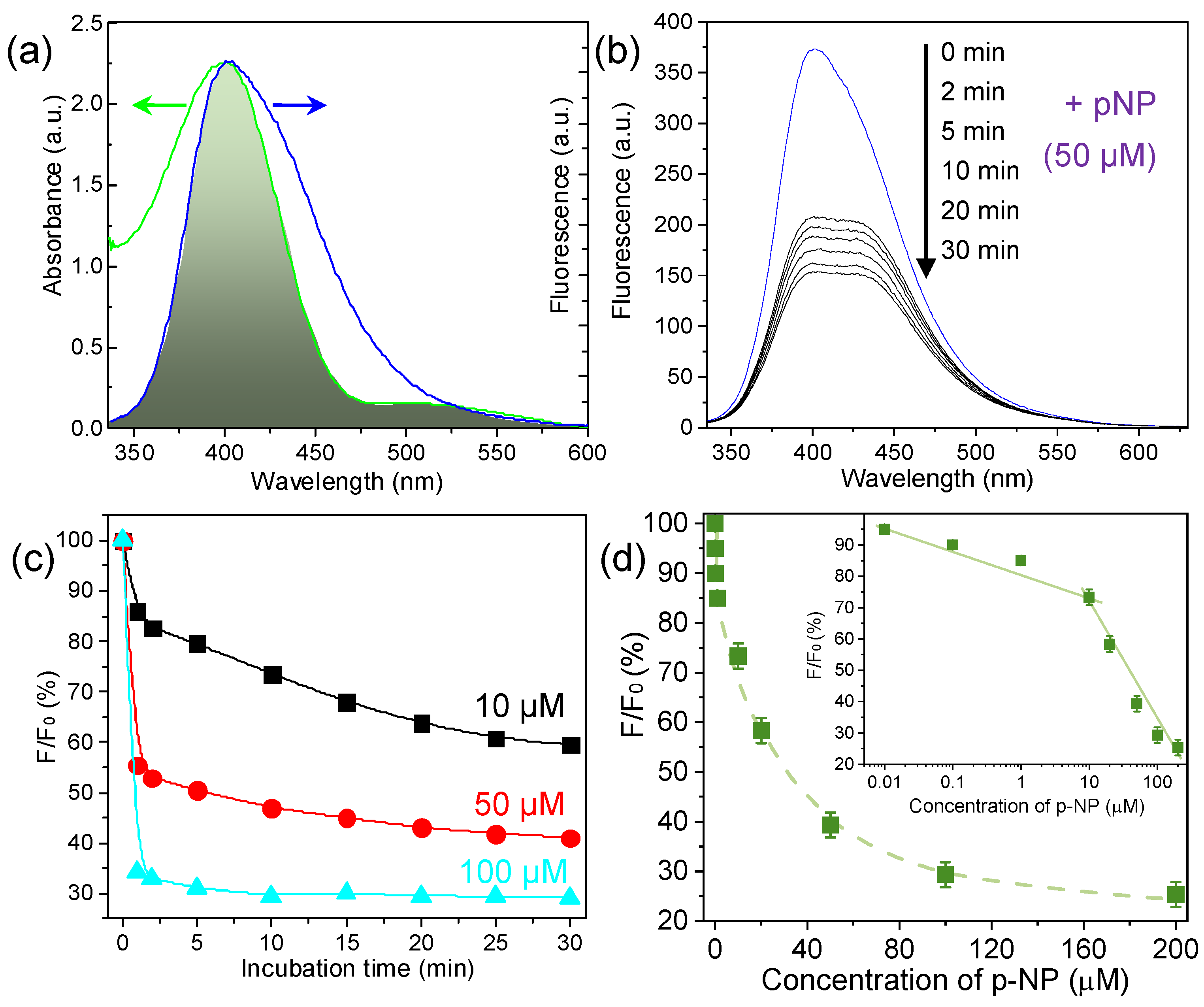 3.5. Fluorescence-Quenched Sensor for Detecting p-NP Molecules