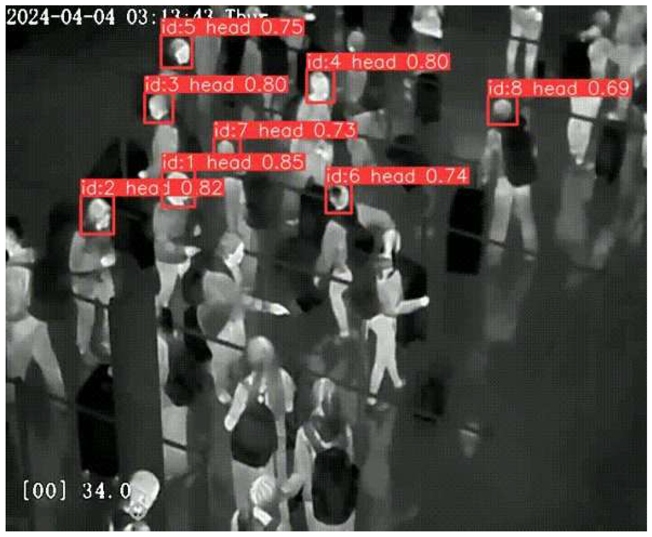 The human detection and tracking system employs a customized YOLOv11-based deep convolutional neural network architecture specifically optimized for thermal imaging applications in crowded public spaces. The model was trained using a dataset comprising over 50,000 annotated thermal image frames collected at Athens International Airport under diverse operational conditions including varying passenger densities, lighting conditions, and environmental temperatures. The training dataset included examples of passengers in multiple poses and activities representative of typical airport scenarios, ensuring robust detection performance across realistic use cases. Model evaluation on an independent validation dataset demonstrates a mean average precision (mAP) of 0.87 at an Intersection over Union (IoU) threshold of 0.50, indicating strong detection accuracy for the intended application. Inference processing occurs on NVIDIA Jetson AGX edge GPU hardware co-located with the thermal cameras, achieving a detection latency of 45 milliseconds per frame, which enables real-time processing of all eight camera streams simultaneously without introducing significant delays in alert generation or dashboard updates.
