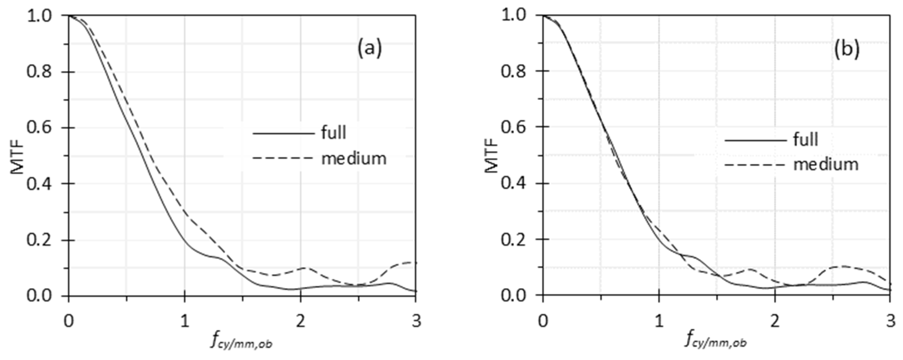 - ISO 15529; Optics and Photonics—Optical Transfer Function—Principles of Measurement of Modulation Transfer Function (MTF) of Sampled Imaging Systems. The International Organization for Standardization: Geneva, Switzerland, 2010.