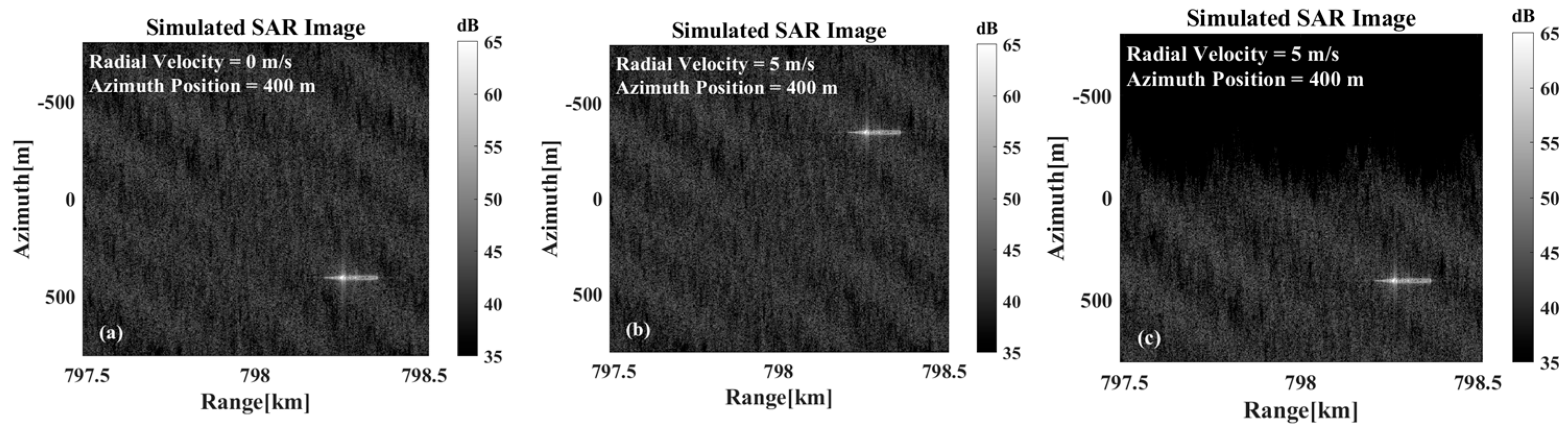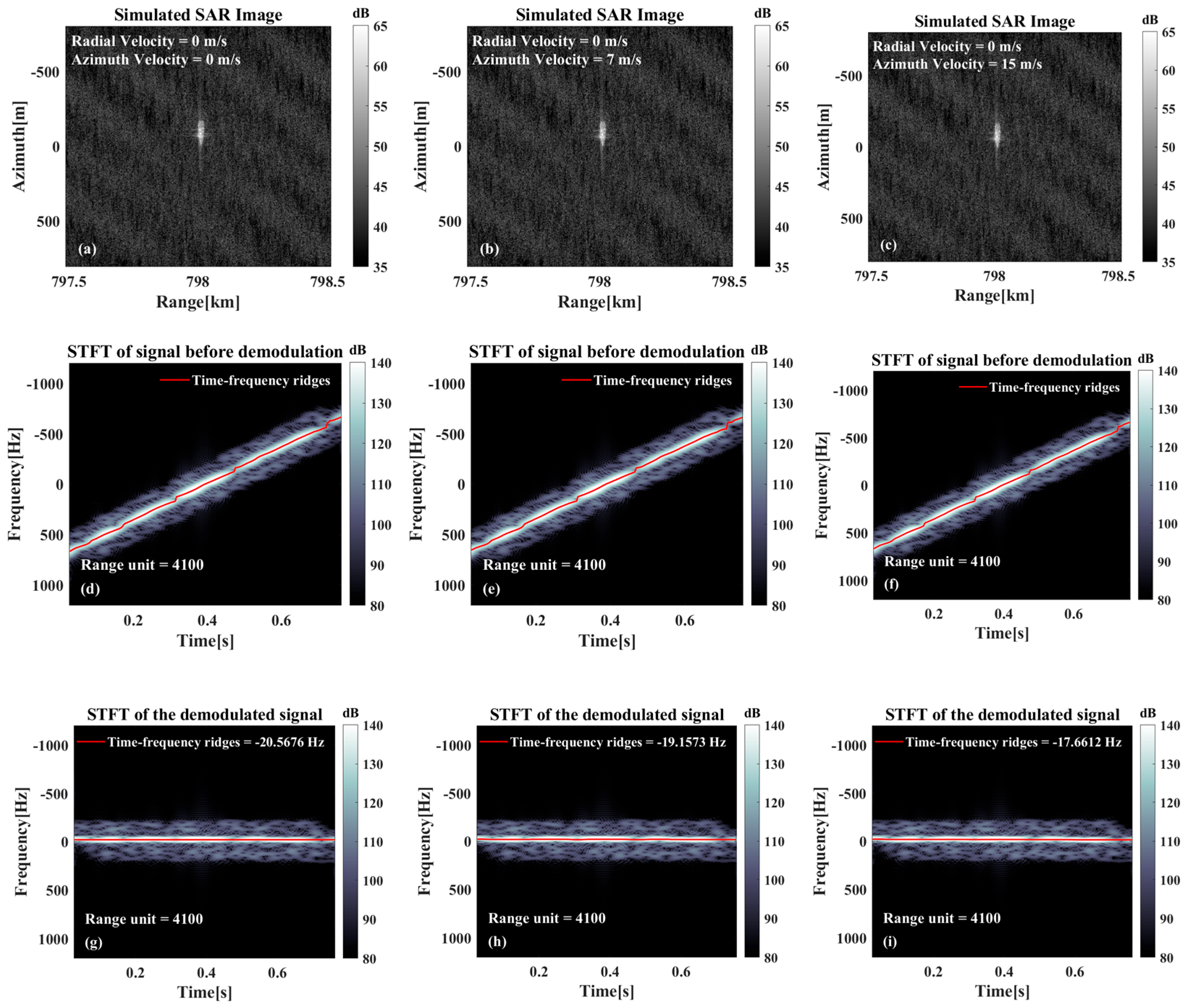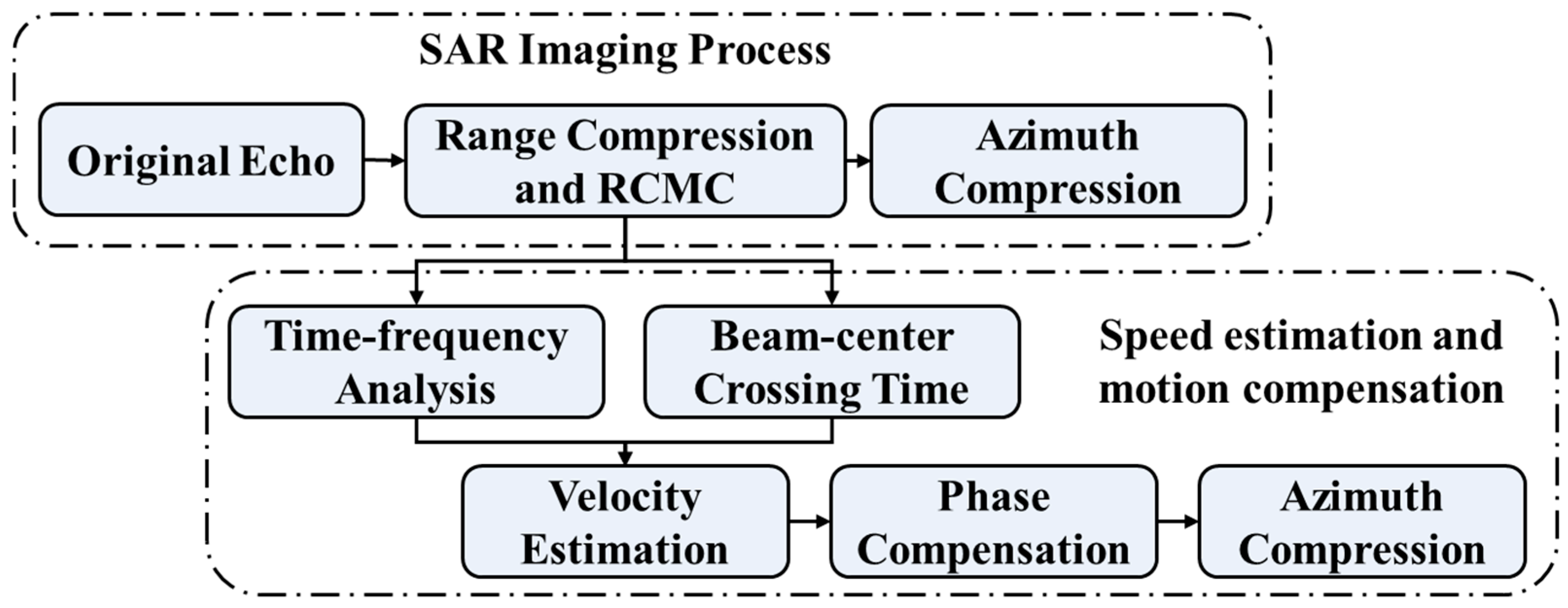 - Park, J.W.; Won, J.S. An Efficient Method of Doppler Parameter Estimation in the Time–Frequency Domain for a Moving Object from TerraSAR-X Data. IEEE Trans. Geosci. Remote Sens. 2011, 49, 4771–4787. [Google Scholar] [CrossRef]