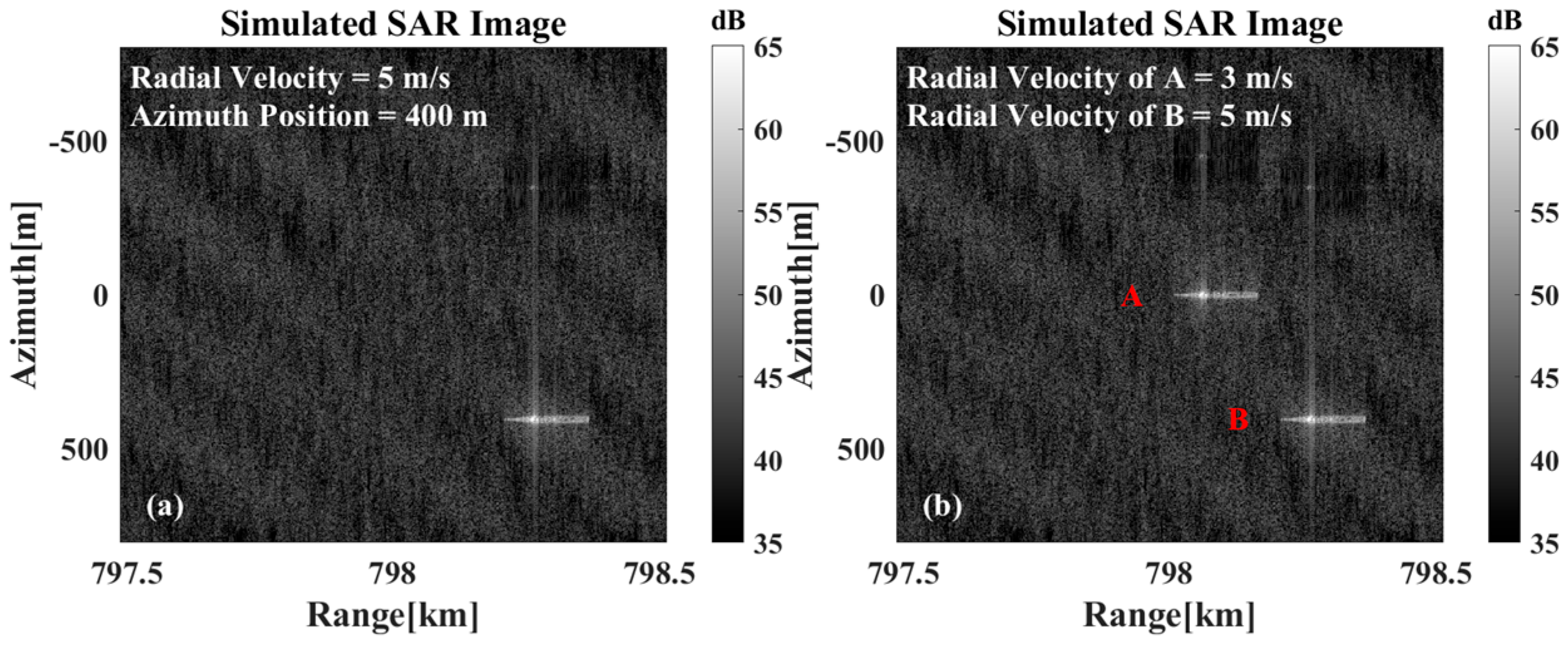 - Liu, K.; He, X.; Liao, G.; Zhu, S.; Zeng, C. Estimating Motion Parameters of Ground Moving Targets from Dual-Channel SAR Systems. Remote Sens. 2025, 17, 555. [Google Scholar] [CrossRef]