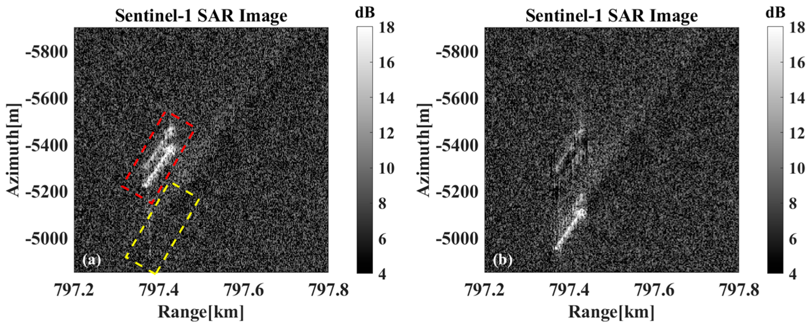 - Renga, A.; Graziano, M.D.; Moccia, A. Segmentation of marine SAR images by sublook analysis and application to sea traffic monitoring. IEEE Trans. Geosci. Remote Sens. 2018, 57, 1463–1477. [Google Scholar] [CrossRef]