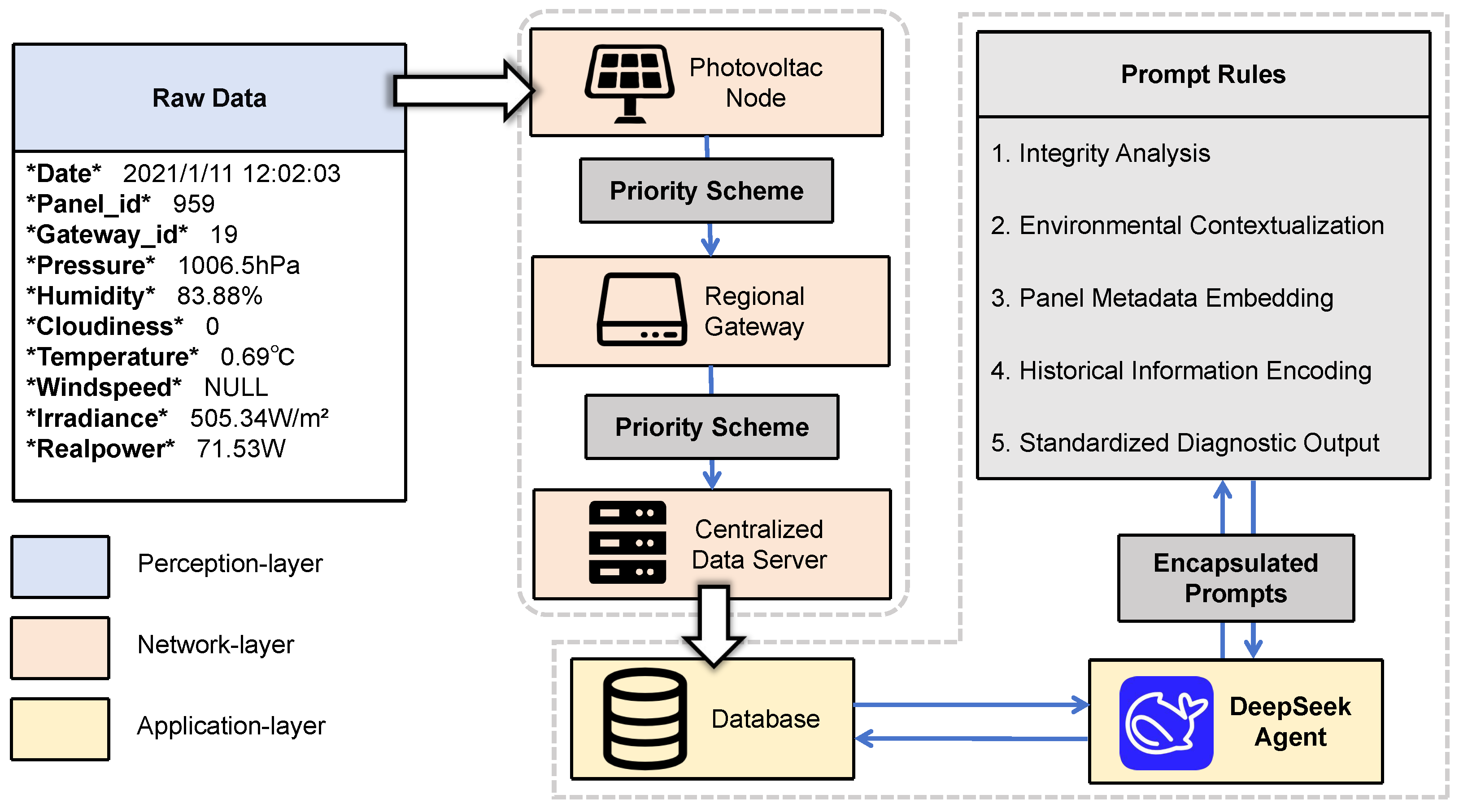 - We integrate a domain-specialized LLM agent to replace conventional supervised classifiers. Unlike these black box models that depend on large-scale labeled datasets and face challenges with unseen fault types, our agent leverages zero-shot semantic reasoning. By synthesizing environmental context, physical metadata, and historical trends, the system automates root cause analysis for long-tail untrained fault scenarios, delivering actionable interpretable maintenance insights that bridge the divide between signal detection and operational decision-making.