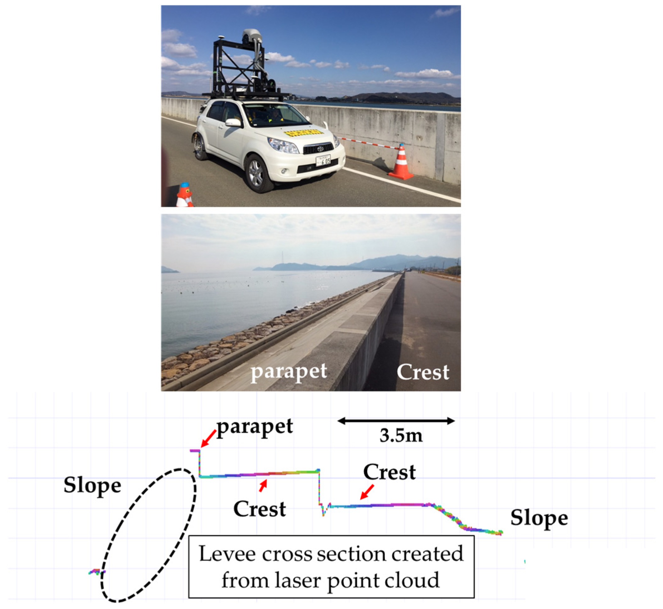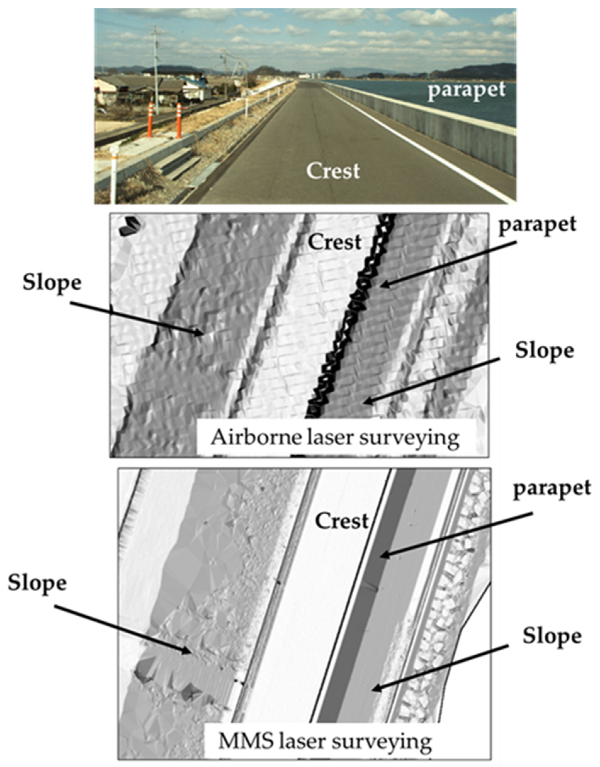 - Tachibana, K.; Mano, K.; Shimamura, H.; Nishiyama, S. The Application of Mobile Mapping System to River Embankment Measurement. J. Jpn. Soc. Photogramm. Remote Sens. 2015, 54, 166–177. [Google Scholar] [CrossRef]