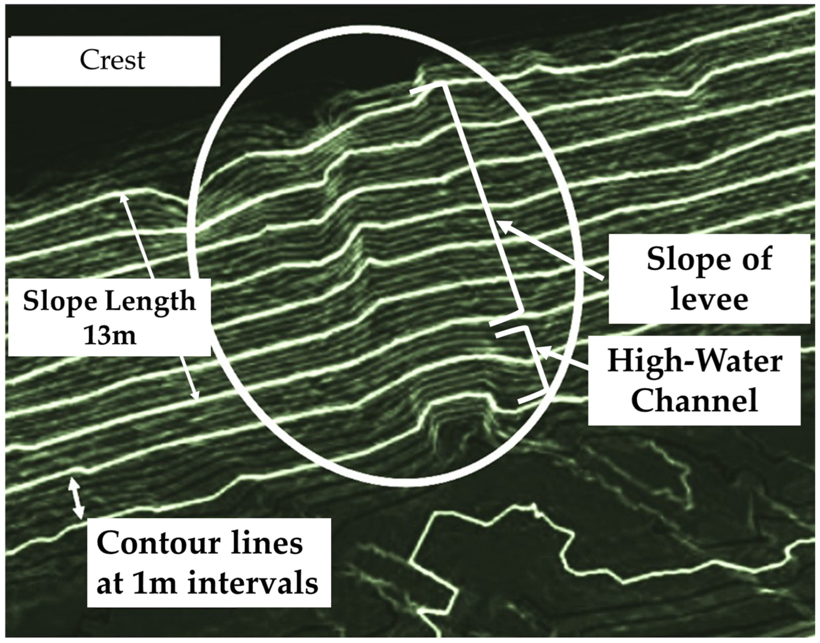 - Casas, A.; Riaño, D.; Greenberg, J.; Ustin, S. Assessing levee stability with geometric parameters derived from airborne LiDAR. Remote Sens. Environ. 2012, 117, 281–288. [Google Scholar] [CrossRef]