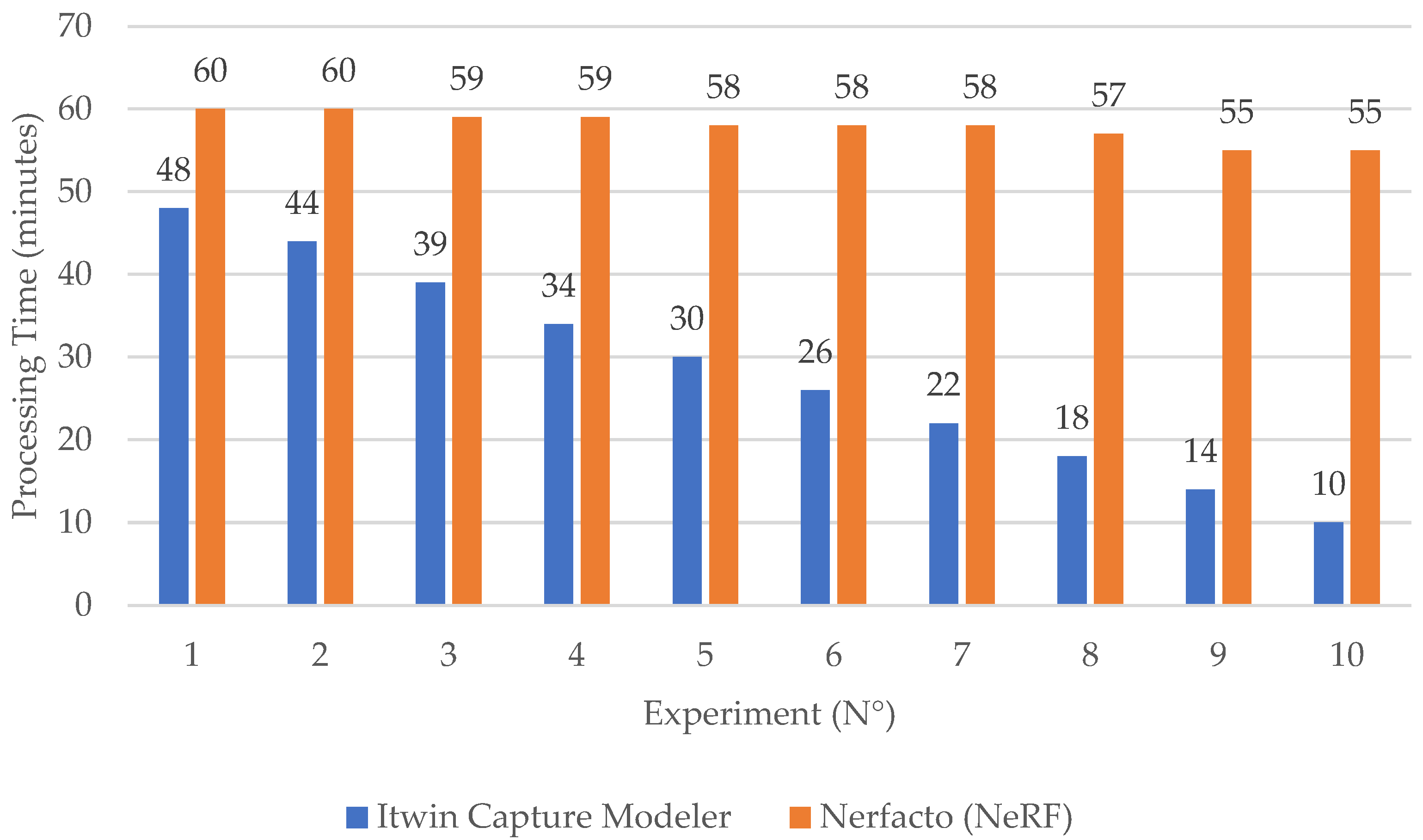 Processing time was measured from image import to the export of point clouds or meshes. As shown in