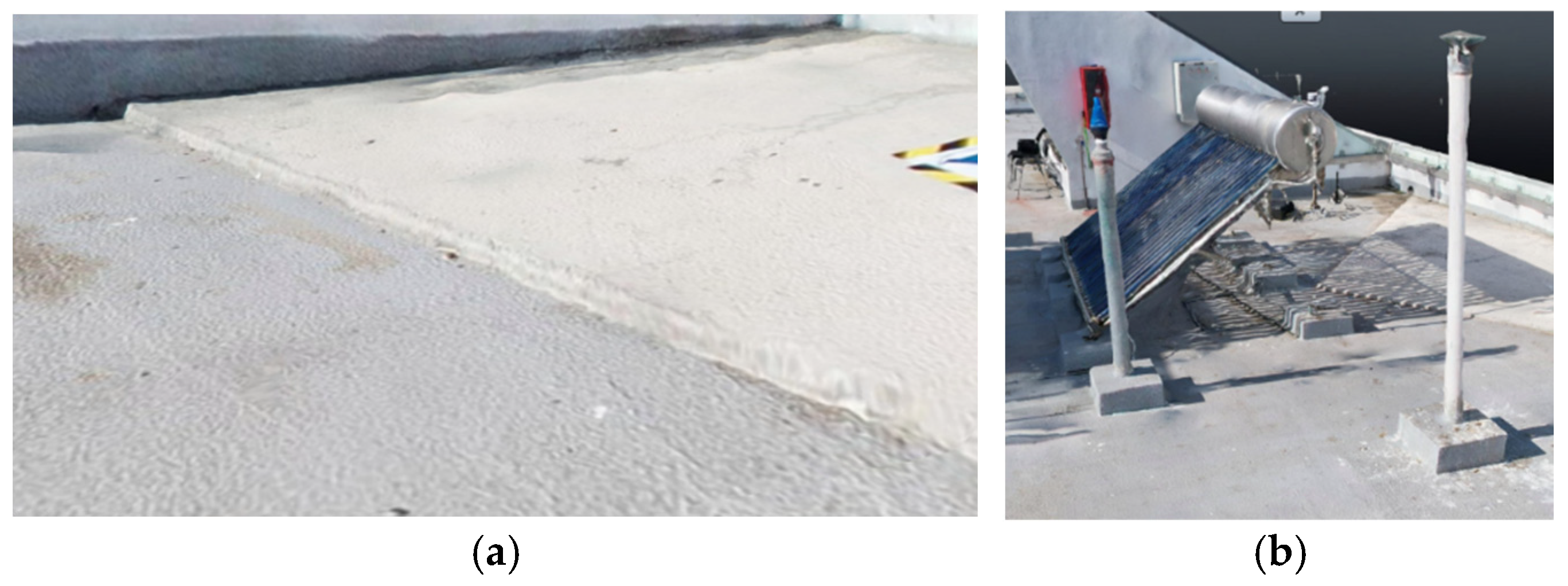 To provide geometric control and scale consistency, six GCPs were distributed across the terrace area and measured using a Spectra Precision Focus 2 series total station. These GCPs served as high-accuracy reference points for spatial alignment and scaling. The same set of GCPs was consistently used across all reconstruction experiments, ensuring comparable geometric conditions between NeRF-based and photogrammetric models.