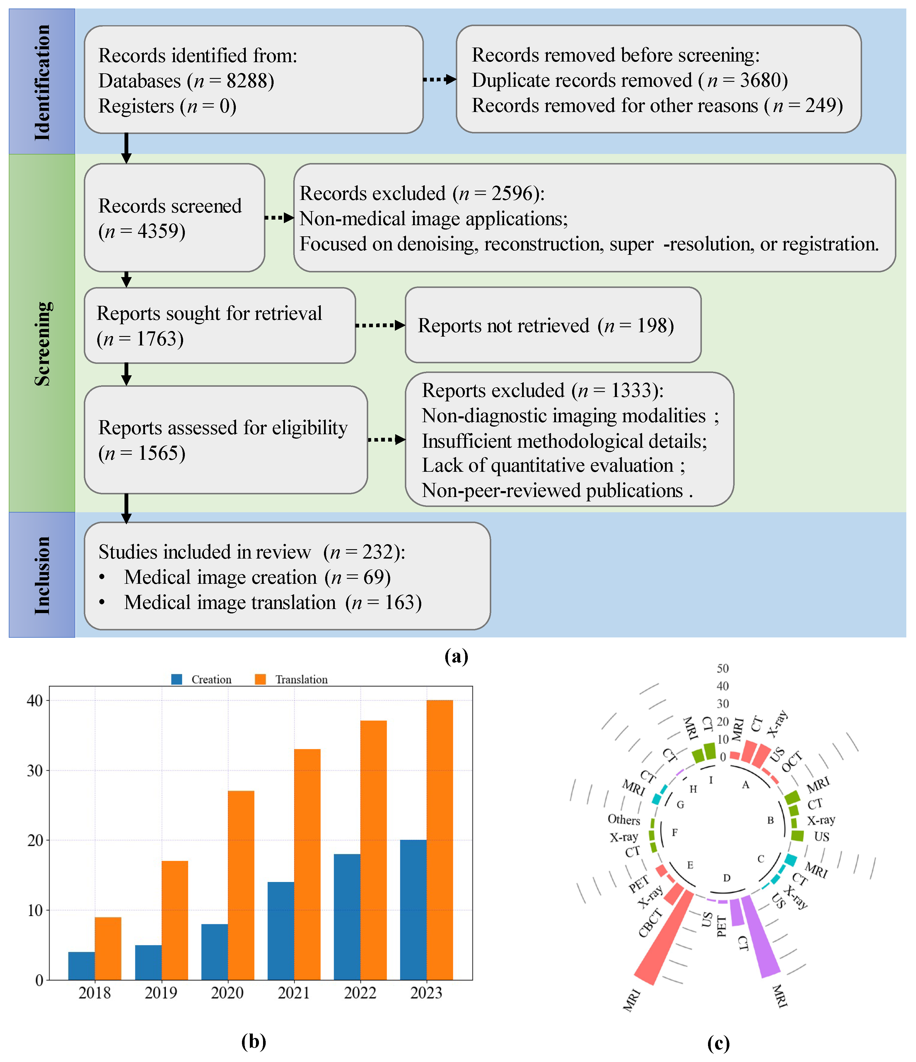 APA StylePang, H., Zhang, T., Wu, Y., Chen, S., Qian, W., Yao, Y., Ye, C., Monkam, P., & Qi, S. (2026). Generative Models for Medical Image Creation and Translation: A Scoping Review. Sensors, 26(3), 862. https://doi.org/10.3390/s26030862