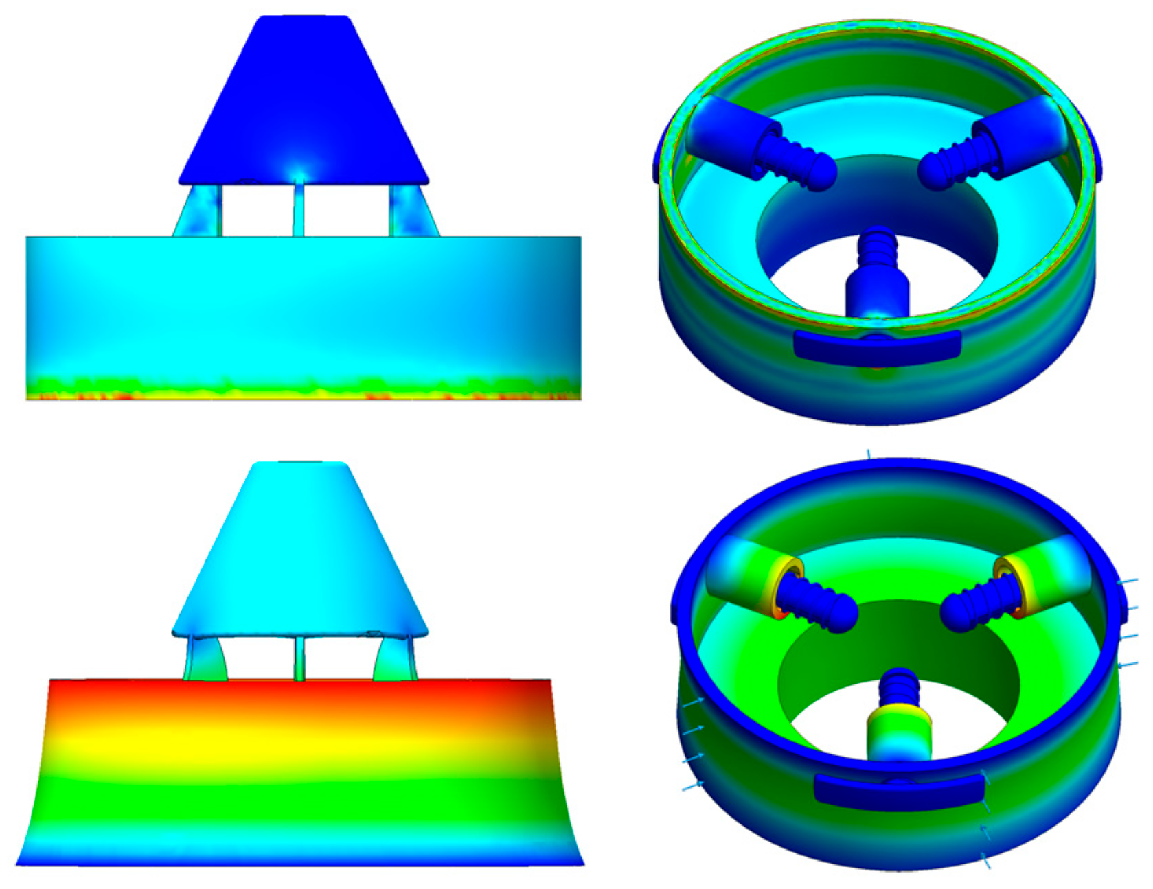 On this basis, finite element numerical analysis was employed to systematically investigate the stress state and deformation characteristics of the device under different loading conditions. The results show that under typical stress conditions, the device exhibits rational load-bearing behavior and a uniform deformation distribution. The strain concentration regions are well matched with the locations of the sensing elements, confirming the rationality and feasibility of the structural design and material selection. The finite element analysis results provide a reliable basis for the final determination of structural parameters and subsequent experimental validation of the device.