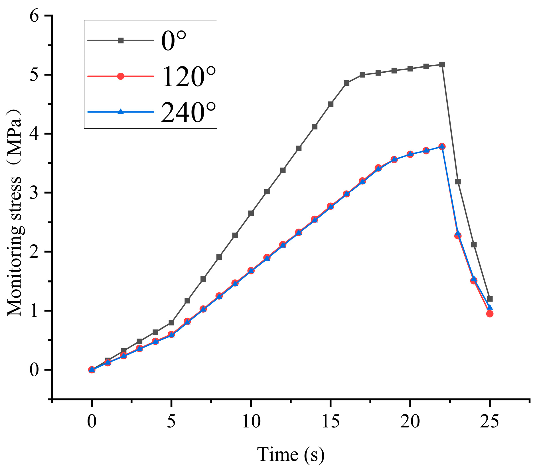 In summary, the finite element analysis results confirm that the monitoring device maintains good structural integrity and mechanical stability under confining pressure. The induced elastic deformation does not impair its stress monitoring capability. These findings provide a reliable mechanical basis for the engineering application of the device in deep and complex stress environments.