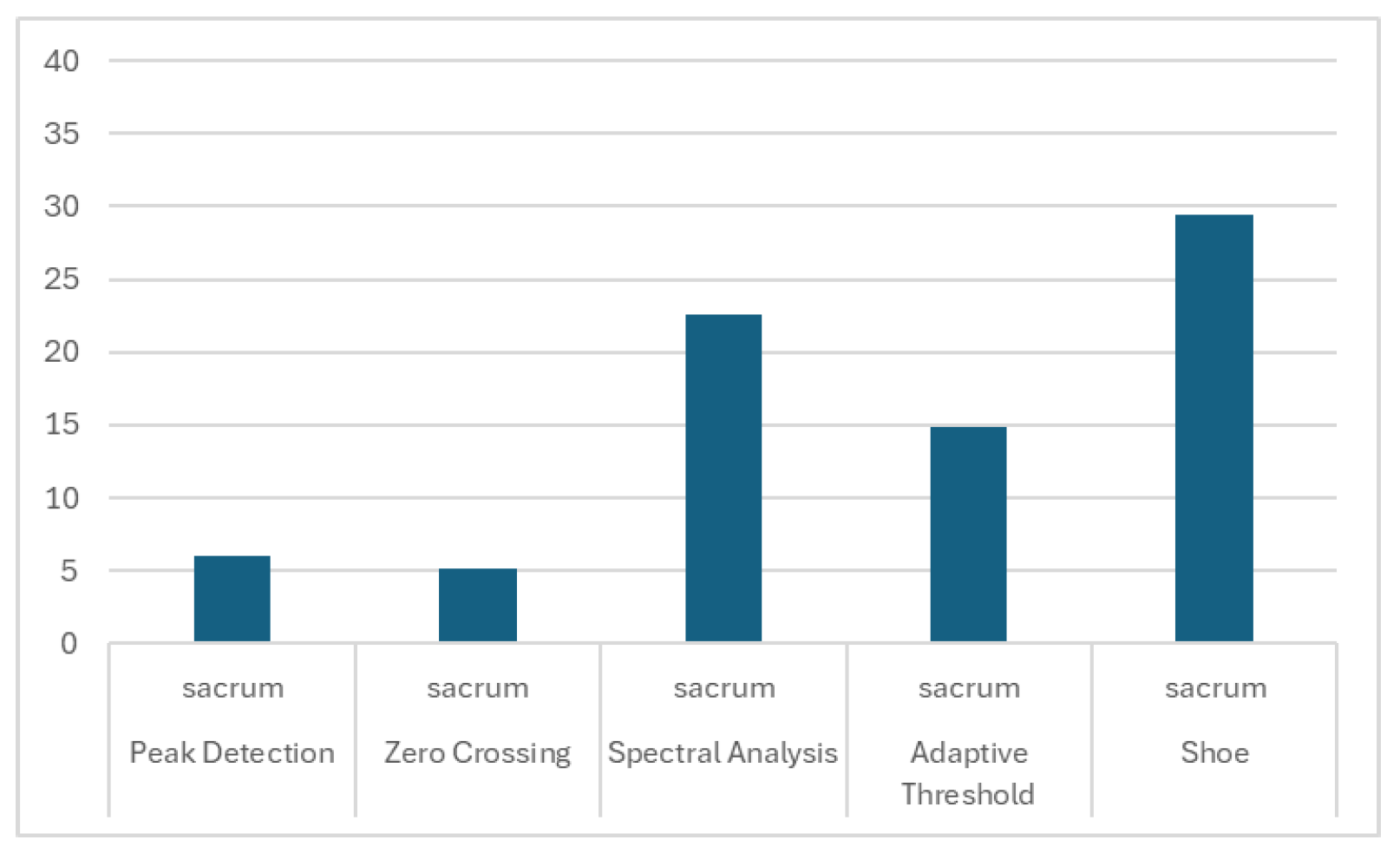 Notably, Zero-Crossing exhibited the highest variability (standard deviation 0.18), indicating strong sensitivity to experimental conditions. Spectral Analysis showed the most consistent performance (standard deviation 0.11), though its minimum F1-score (0.61) was higher than other algorithms, suggesting a floor effect in challenging conditions.