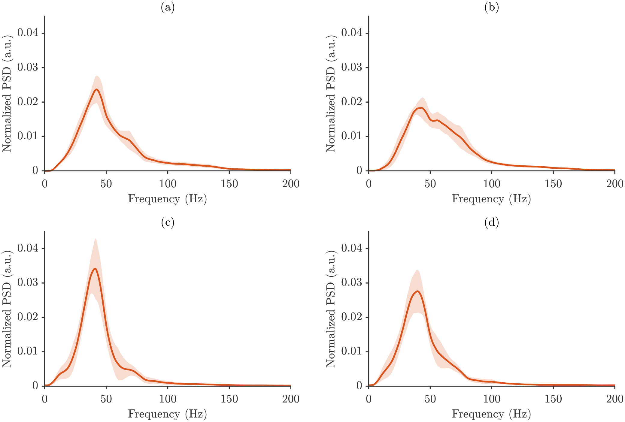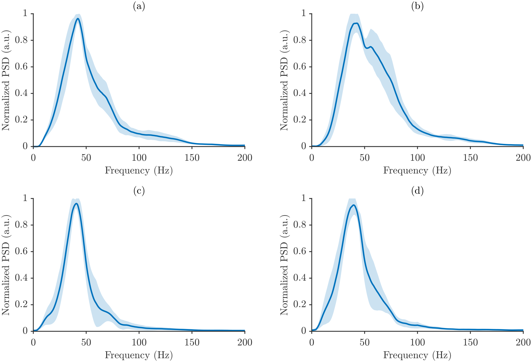 Normalization was applied exclusively in the frequency domain to ensure consistent comparisons across repetitions, muscles, and motor tasks, emphasizing relative spectral characteristics rather than absolute amplitude. Time-domain amplitude normalization, including MVC-based scaling, was intentionally omitted to avoid introducing variability unrelated to the intrinsic spectral content.