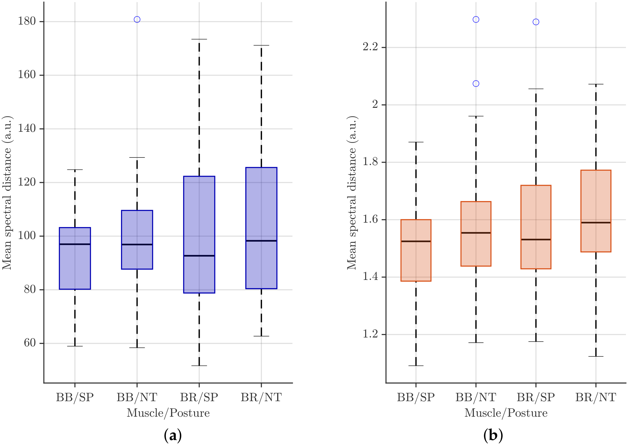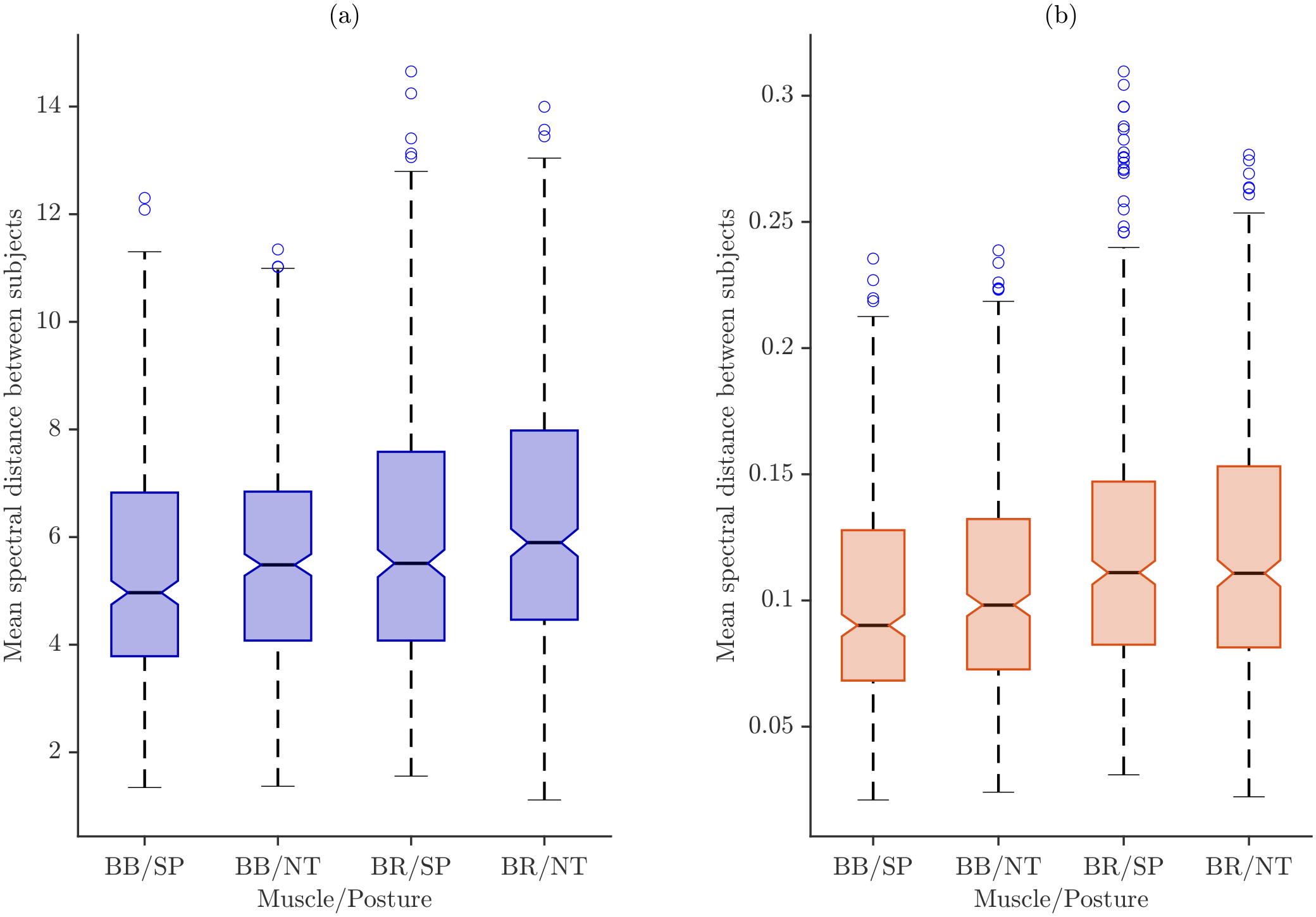 Despite extensive evidence that upper limb posture alters muscle activation and, consequently, the electrophysiological determinants that shape sEMG signals [22,23,24], the resulting changes in frequency-domain characteristics remain insufficiently characterized. In particular, it is still unclear how different upper limb postures or task types modulate spectral patterns within individuals, or how reproducible these posture-specific frequency features are across participants. Addressing these open questions requires evaluating spectral variability at both the intra-individual and inter-individual levels, as these complementary perspectives are essential to determine whether frequency-domain descriptors can function as reliable and generalizable neuromuscular markers [25,26,27].