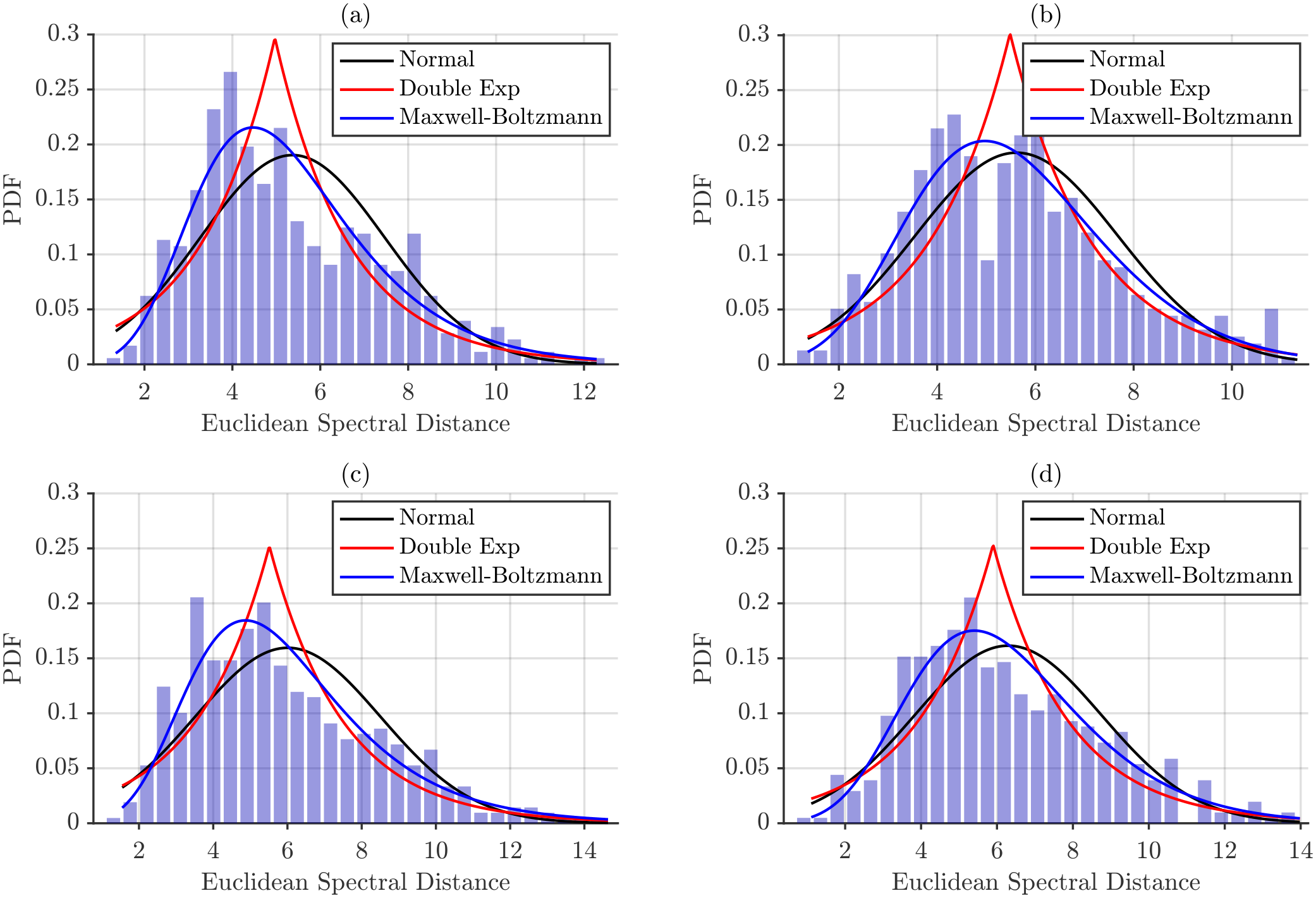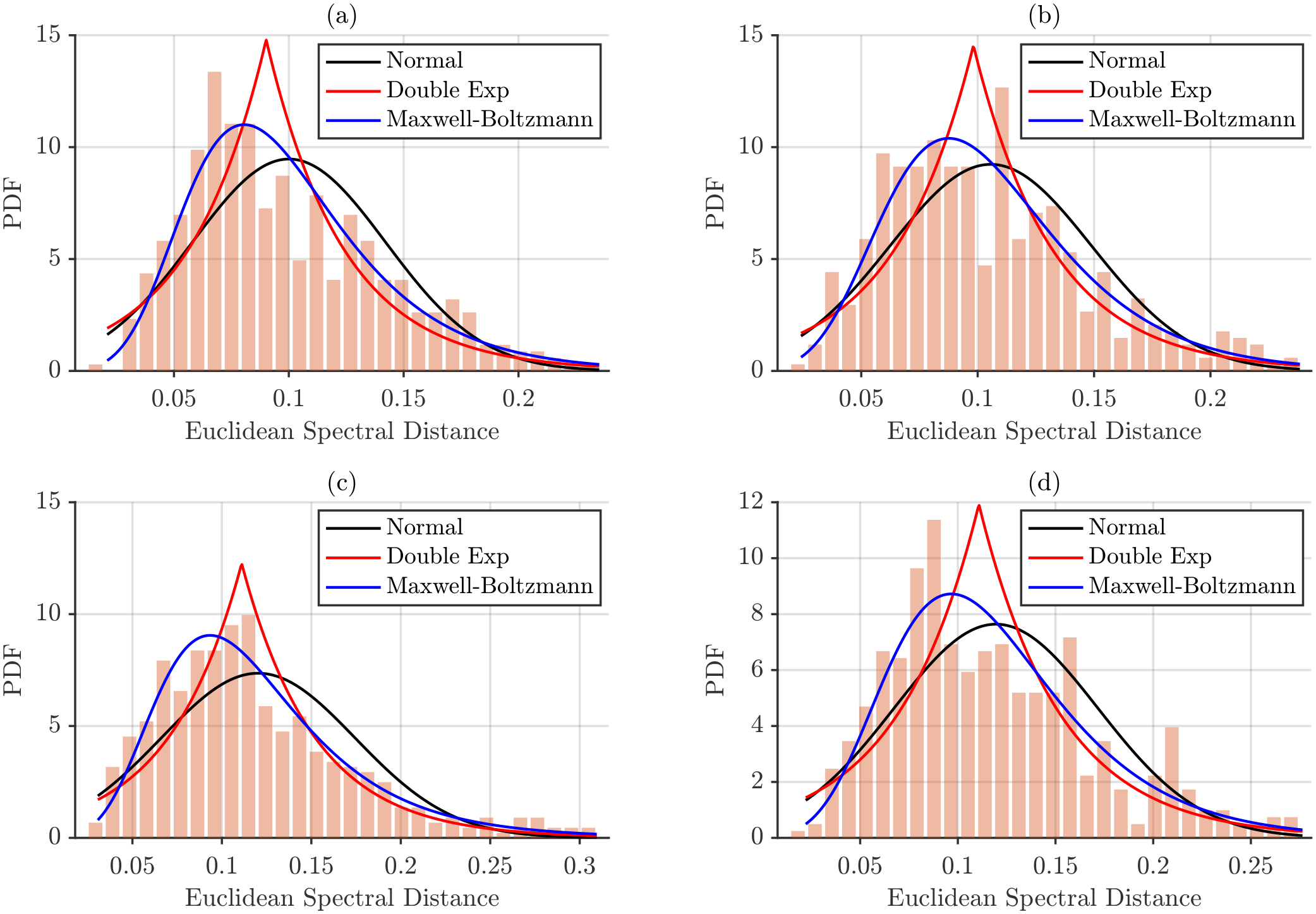 Table 6. Chi-squared goodness-of-fit test results for inter-subject distances under maximum power normalization. Bold indicates p 0.05 .