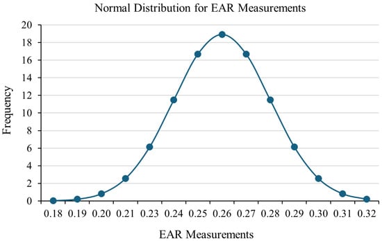To assess whether the selected Eye Aspect Ratio (EAR) threshold is suitable for detecting fatigue, a statistical analysis was conducted using EAR values from 27 participants who were fully alert. As shown in