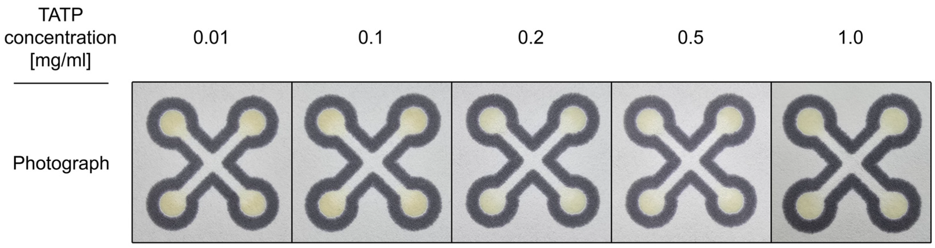 - Ota, R.; Yamada, K.; Suzuki, K.; Citterio, D. Quantitative evaluation of analyte transport on microfluidic paper-based analytical devices (μPADs). Analyst 2018, 143, 643–653. [Google Scholar] [CrossRef]