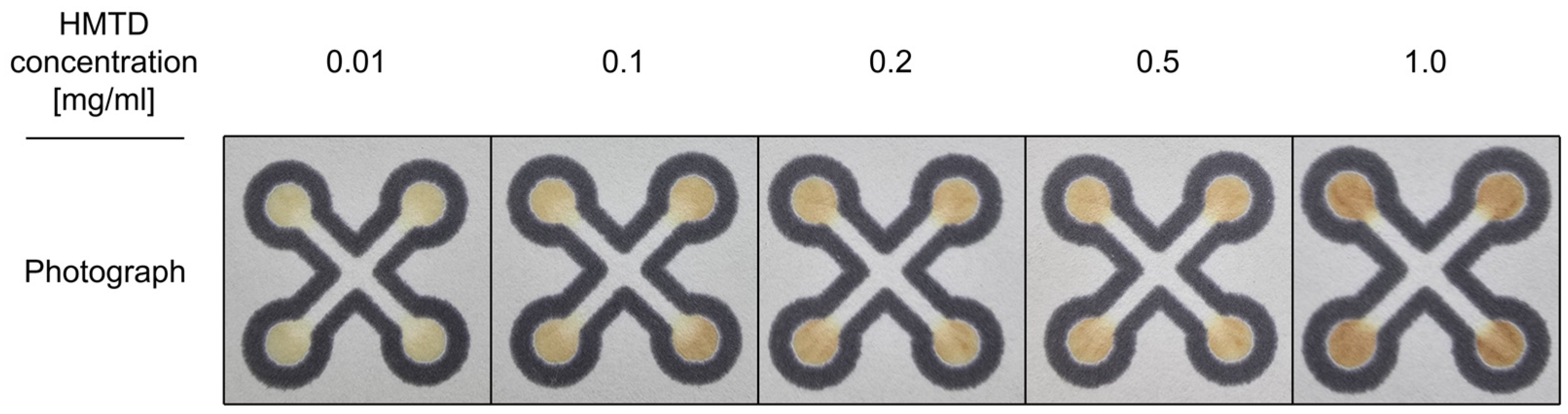 APA StyleFurmanek, W., Lastivka, V., Kasprzak, P., Mazur, I., Baran, P. A., Pniewski, W., Kukiełczyński, Ł., Koszytkowska-Stawińska, M., Grabowska-Jadach, I., Chudy, M., Tokarska, K., Żukowski, K., & Dybko, A. (2026). Colorimetric Determination of Peroxides: A New Paper-Based Sensor for Detecting Hexamethylene Triperoxide Diamine (HMTD). Sensors, 26(3), 904. https://doi.org/10.3390/s26030904