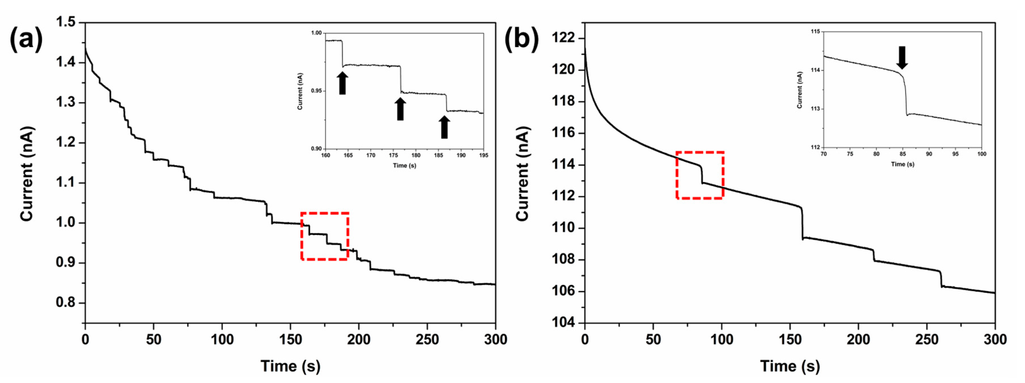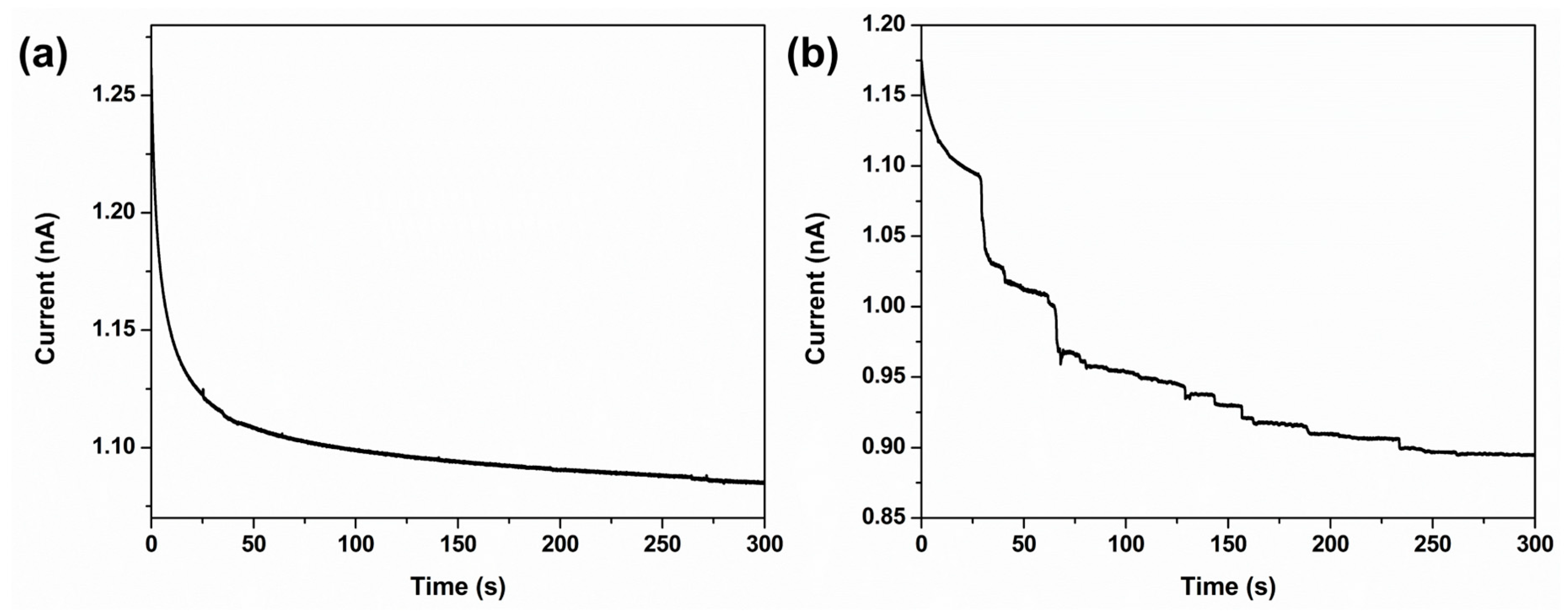 Figure 6b), distinct staircase current decreases corresponding to collision events were clearly detected. These results demonstrate that the proposed electrochemical collision strategy remains effective in real environmental samples containing coexisting ions and potential contaminants, confirming its applicability in complex matrices.