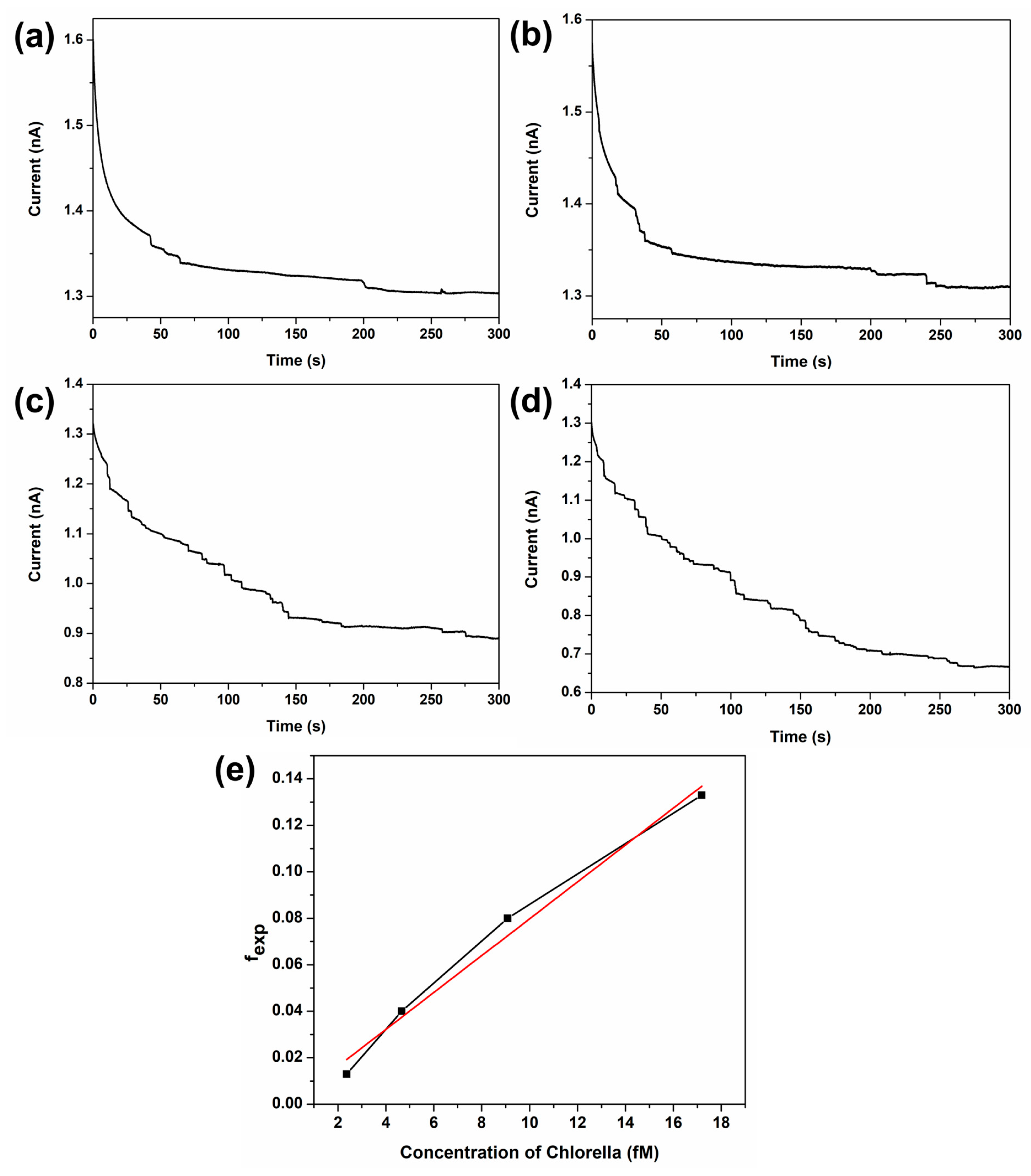 Chlorella cells was subsequently calculated by substituting the experimentally measured step currents into this calibration curve. The equation for the calibration curve is expressed as follows: