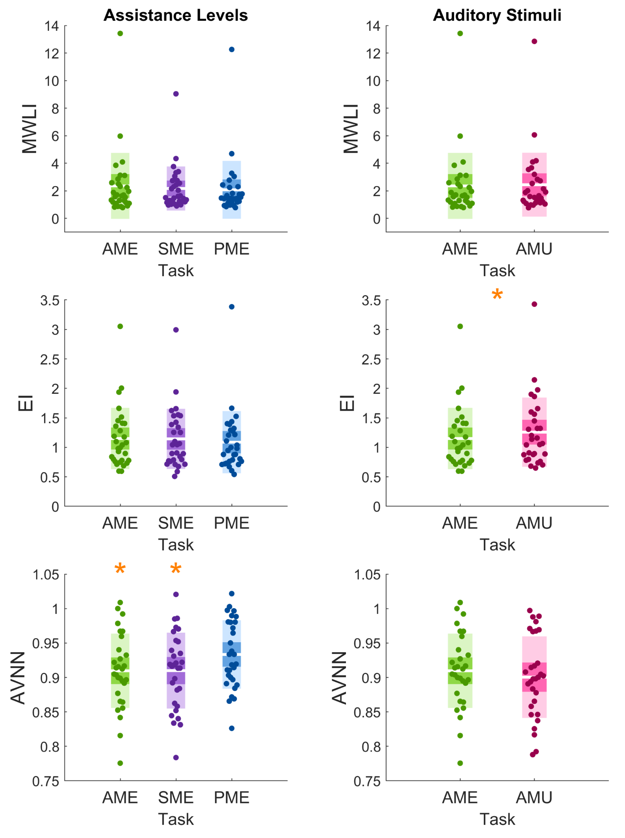 | SUBJECTIVE INDEX | Assistance Levels | Auditory Stimuli | ||