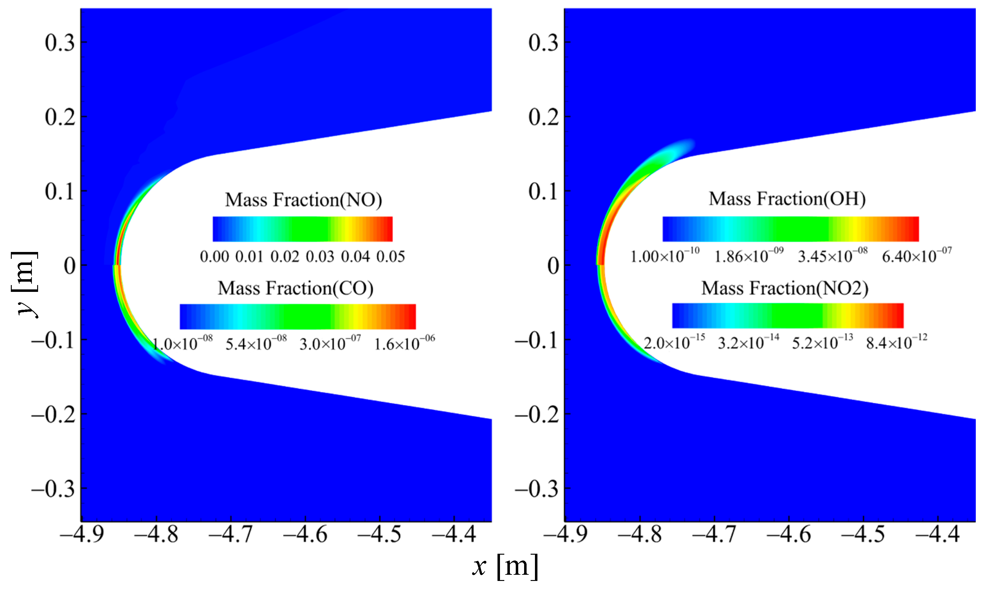 | Peak of mass fraction NO+ (%) | 0.313 | 0.164 | 0.1 | 0.219 |