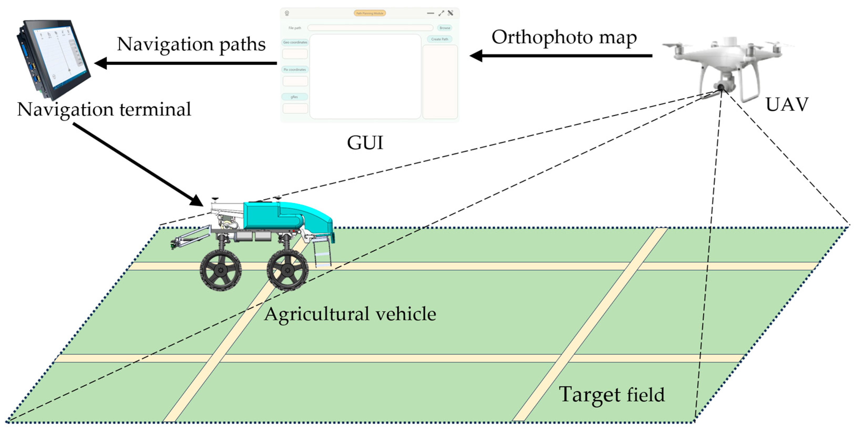 Chicago/Turabian StyleXue, Guangjie, Engen Zhang, Guangshun An, Juan Du, Xiang Yin, Peng Zhou, and Xuening Zhang. 2026. "UAV-Based Coverage Path Planning for Unmanned Agricultural Vehicles" Sensors 26, no. 3: 927. https://doi.org/10.3390/s26030927